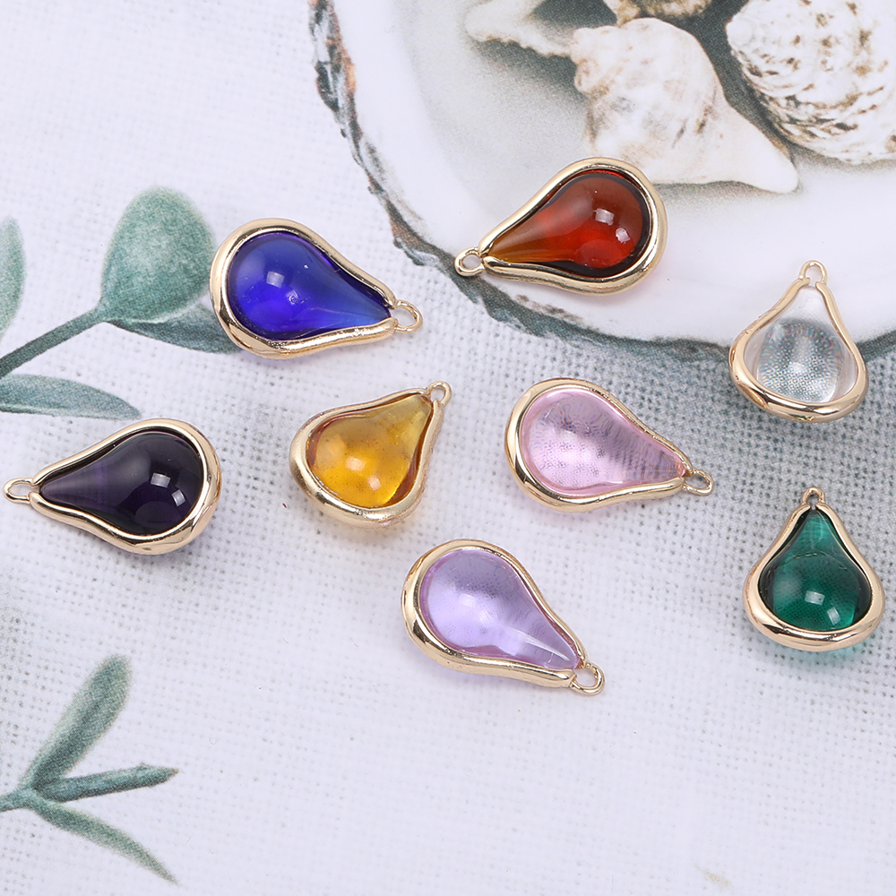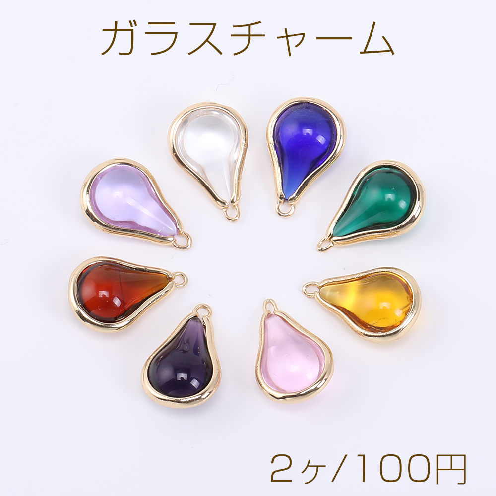 ガラスチャーム 雫型 1カン 12×19mm ゴールド【2ヶ】