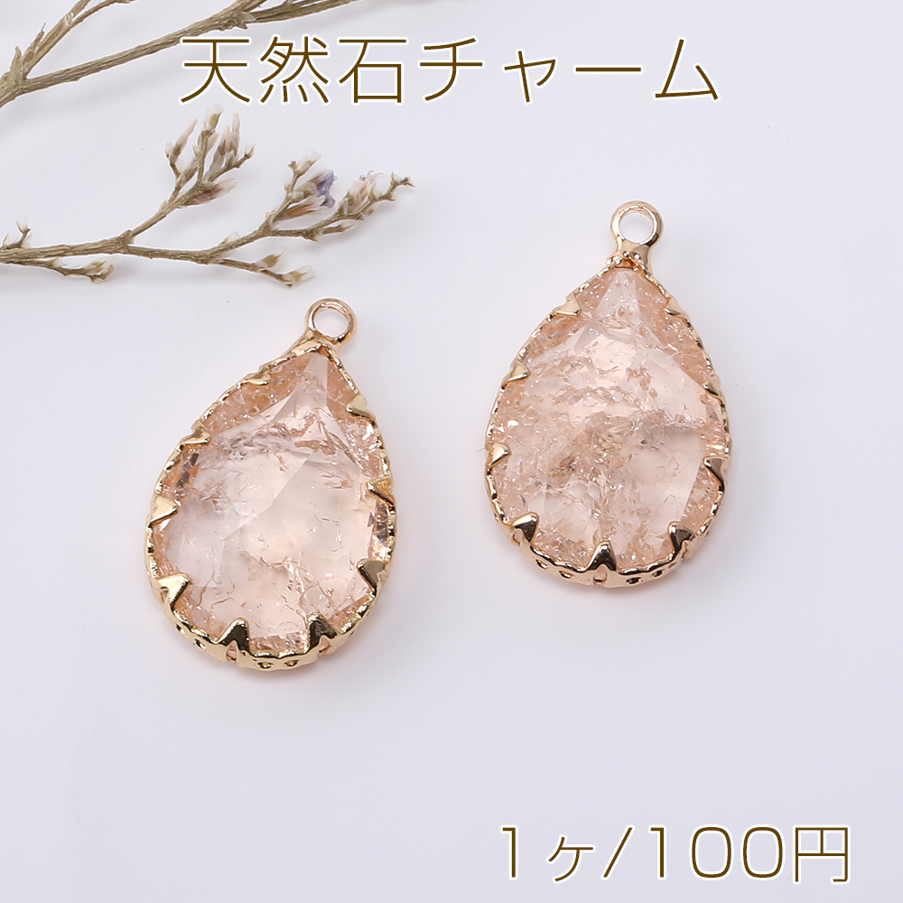 天然石チャーム ローズクォーツ 雫型 1カン 14×22mm ゴールド【1ヶ】