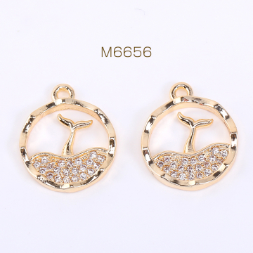 高品質ジルコニアチャーム サークル 魚の尾 1カン 12×14.5mm ゴールド【2ヶ】