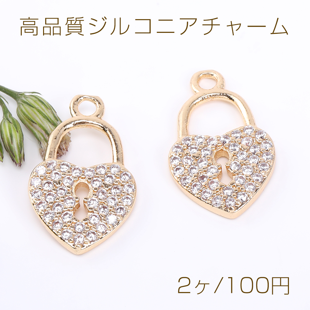 高品質ジルコニアチャーム ハートロック 1カン 10×16mm ゴールド【2ヶ】