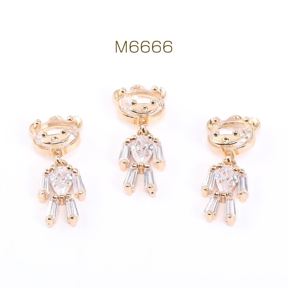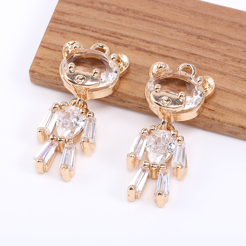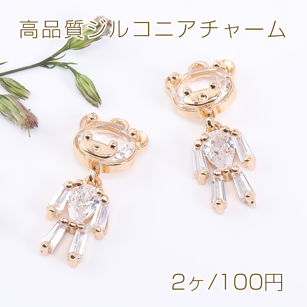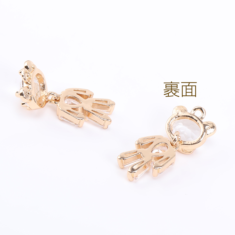 高品質ジルコニアチャーム クマ 1カン 10×21mm ゴールド【2ヶ】