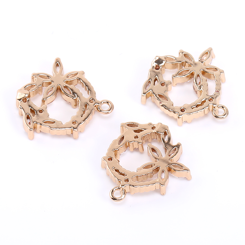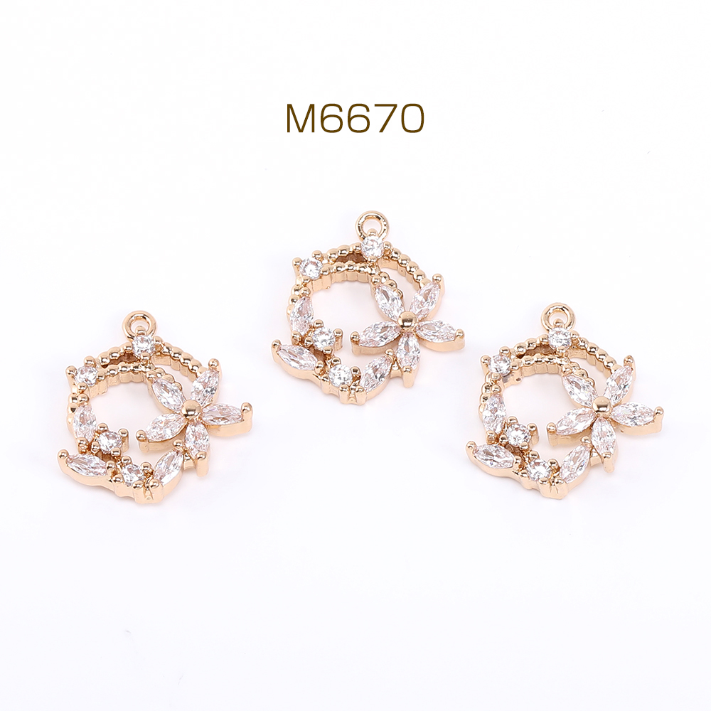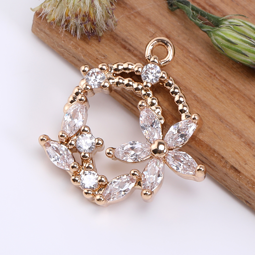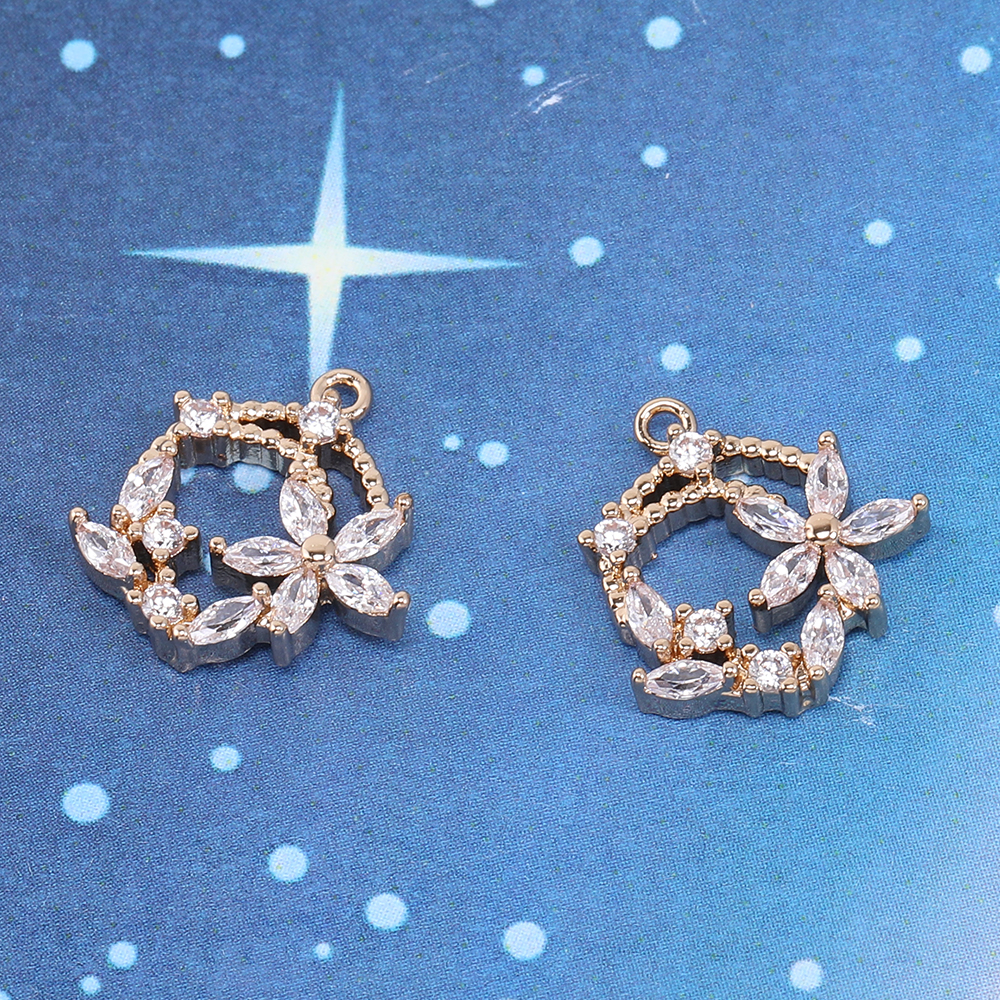 高品質ジルコニアチャーム 花輪 1カン 12×13.5mm ゴールド【2ヶ】