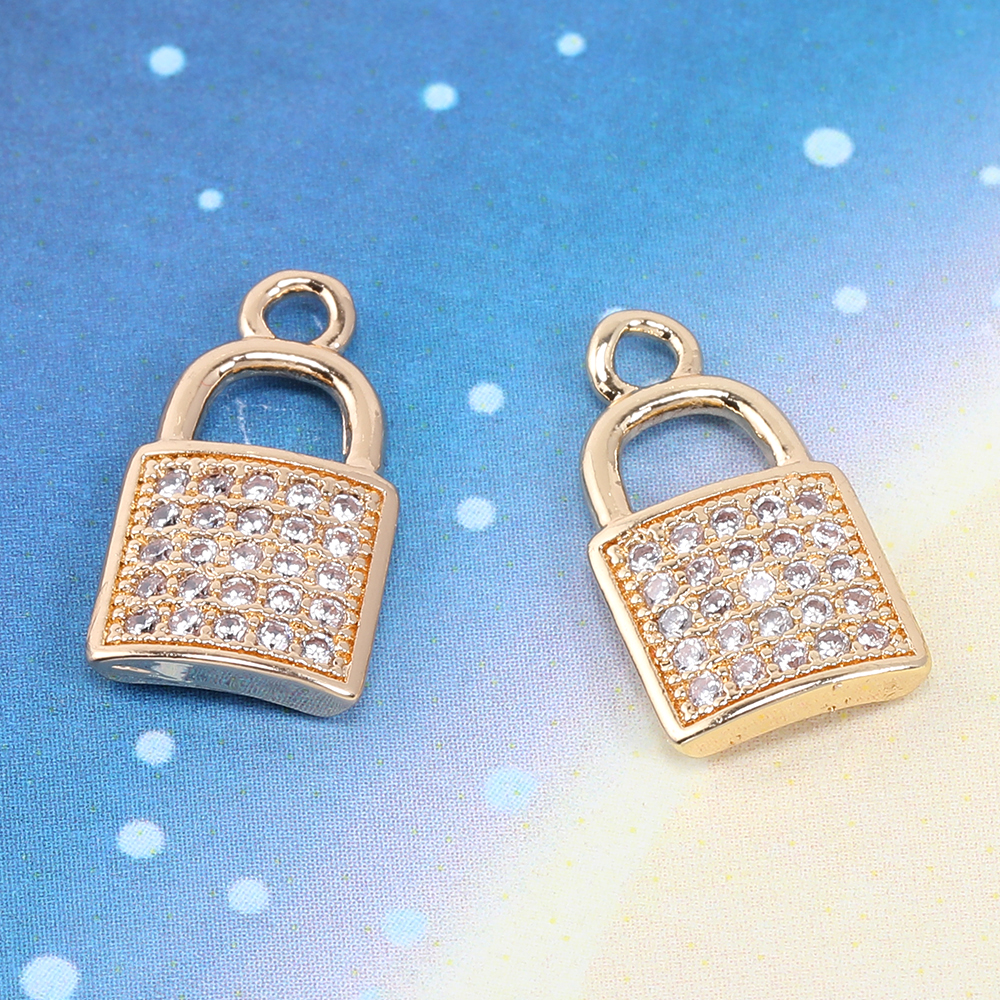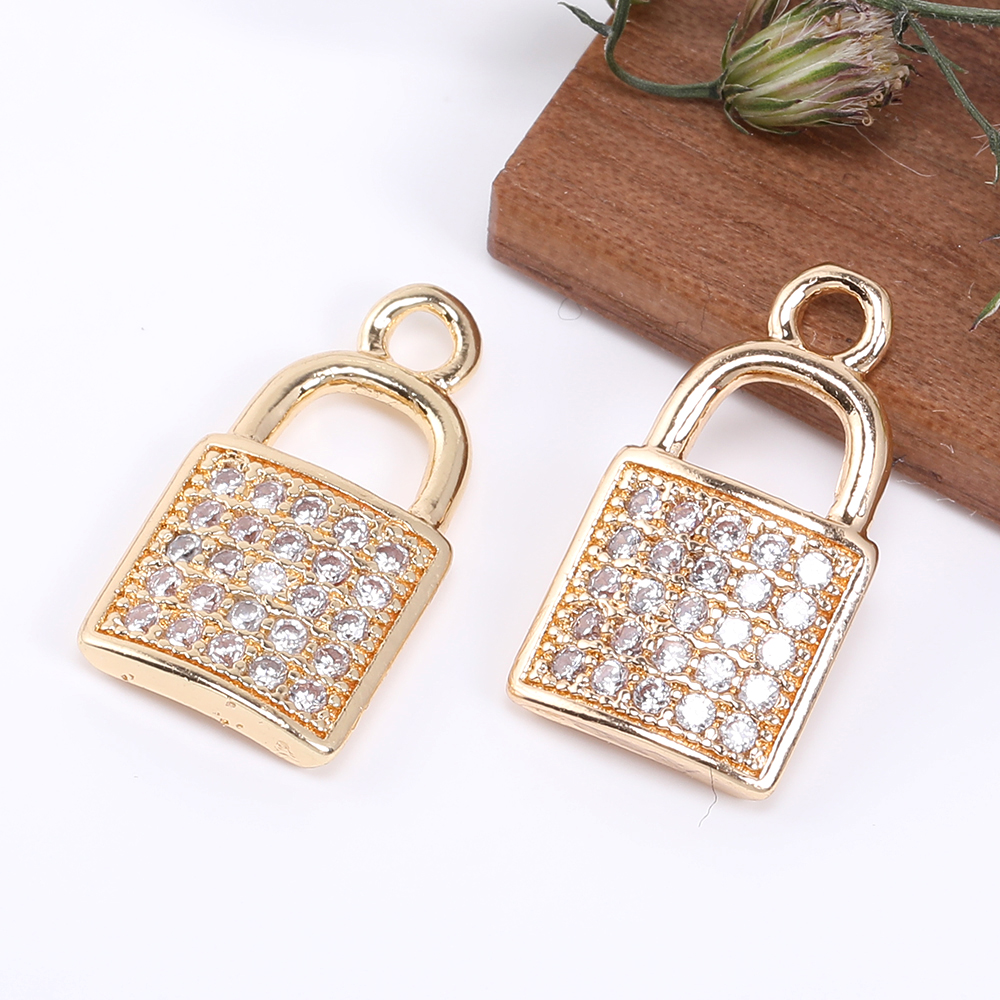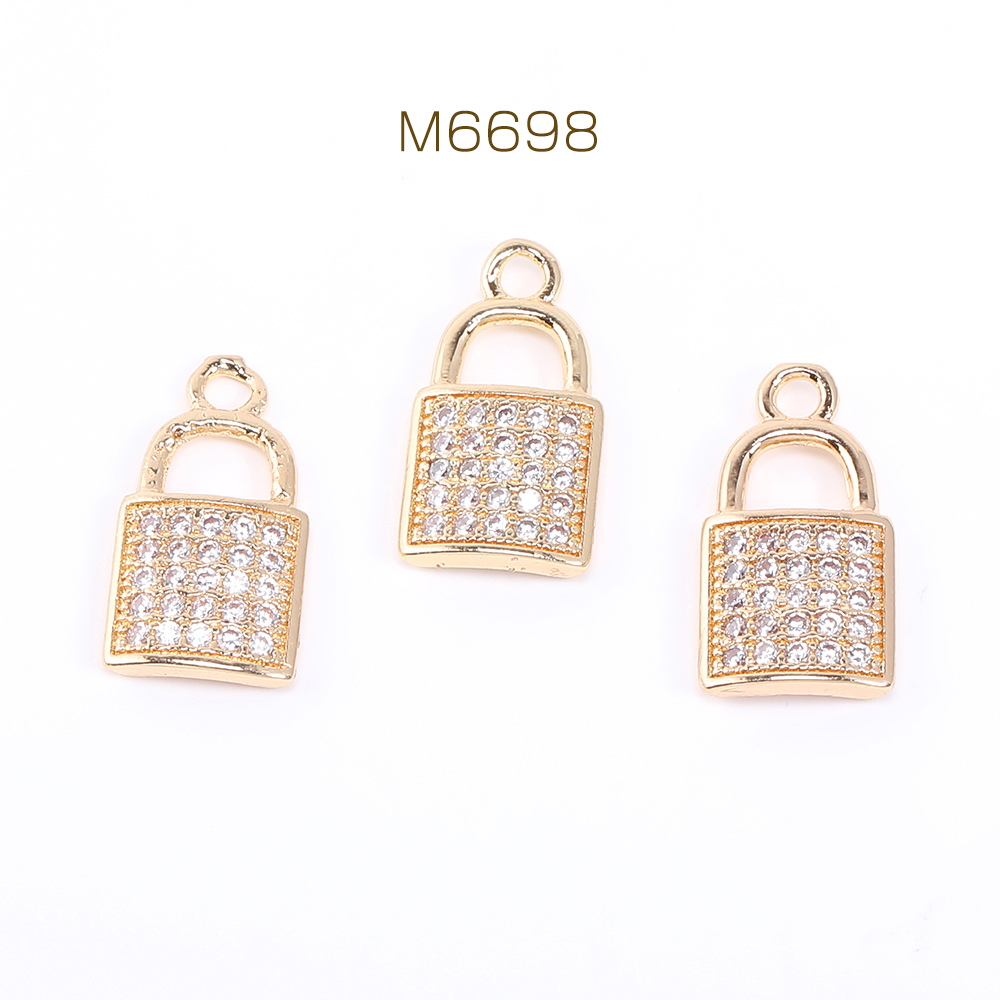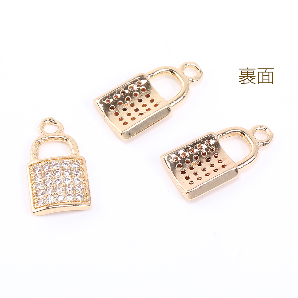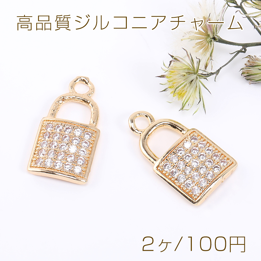 高品質ジルコニアチャーム ロック 1カン 8×14.5mm ゴールド【2ヶ】