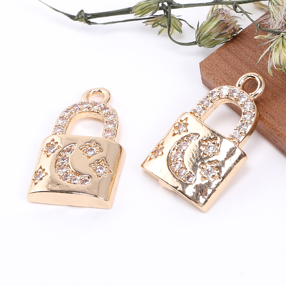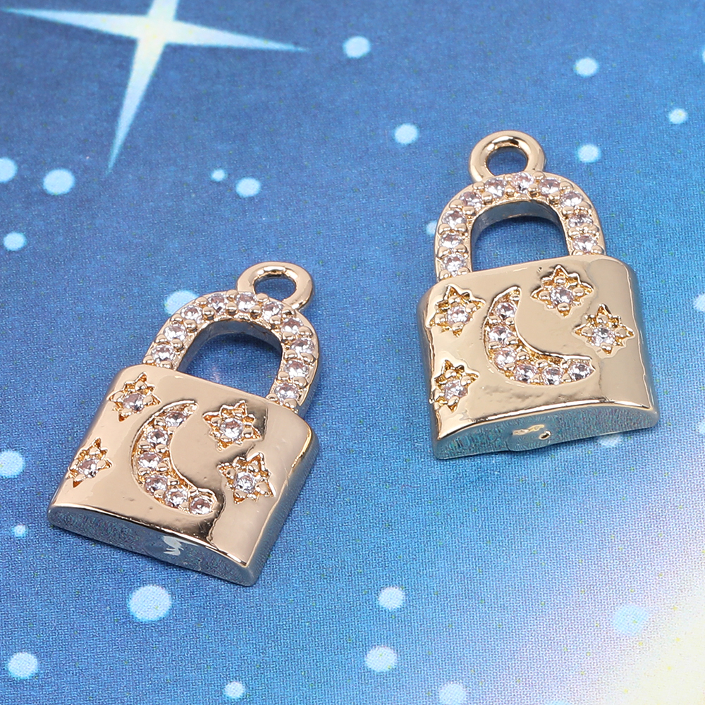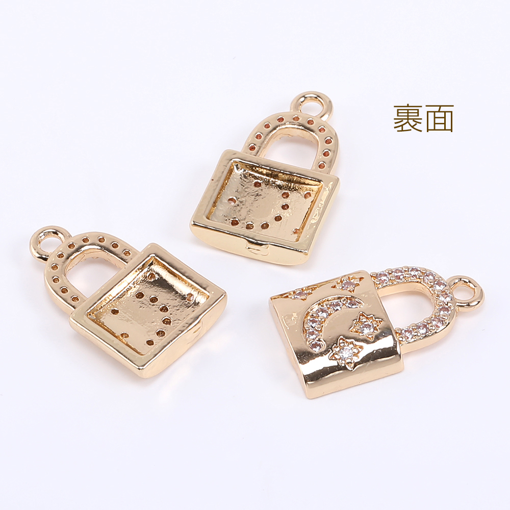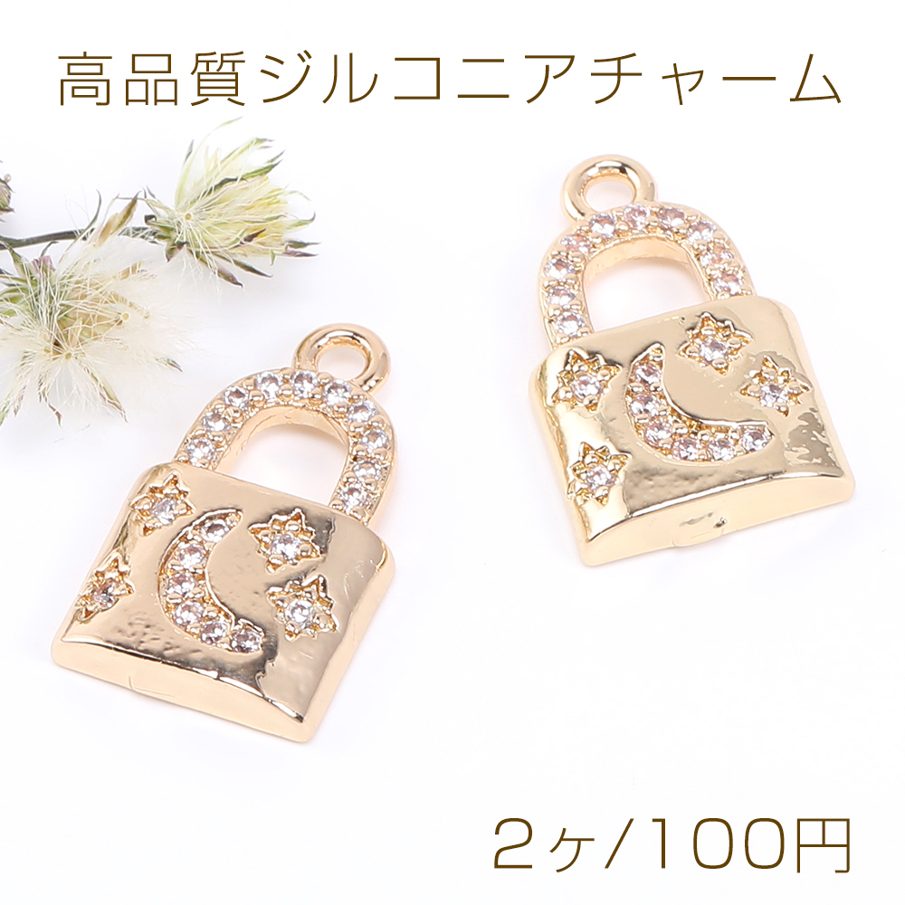 高品質ジルコニアチャーム ロック 星と月付き 1カン 10×16mm ゴールド【2ヶ】