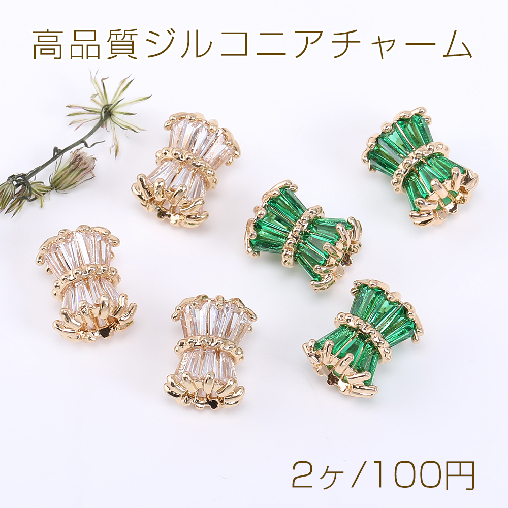 高品質ジルコニアチャーム 砂時計 9×11mm ゴールド【2ヶ】