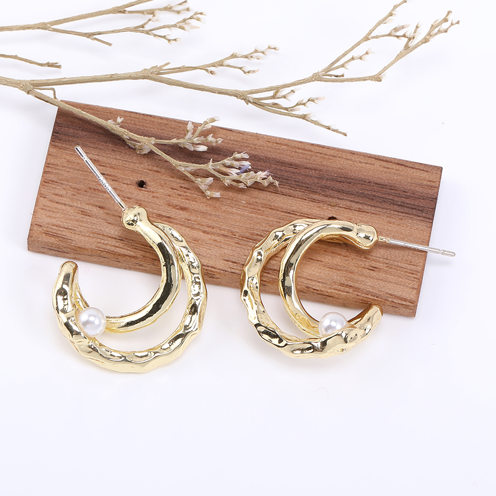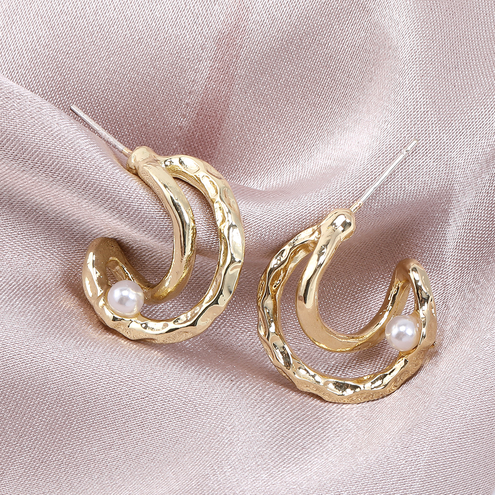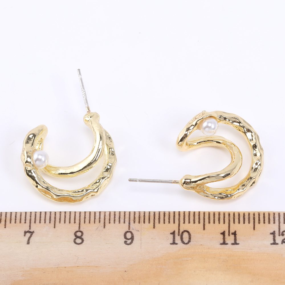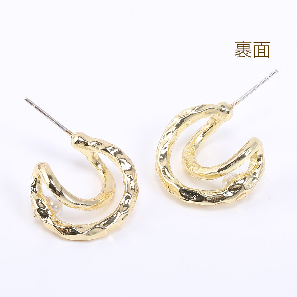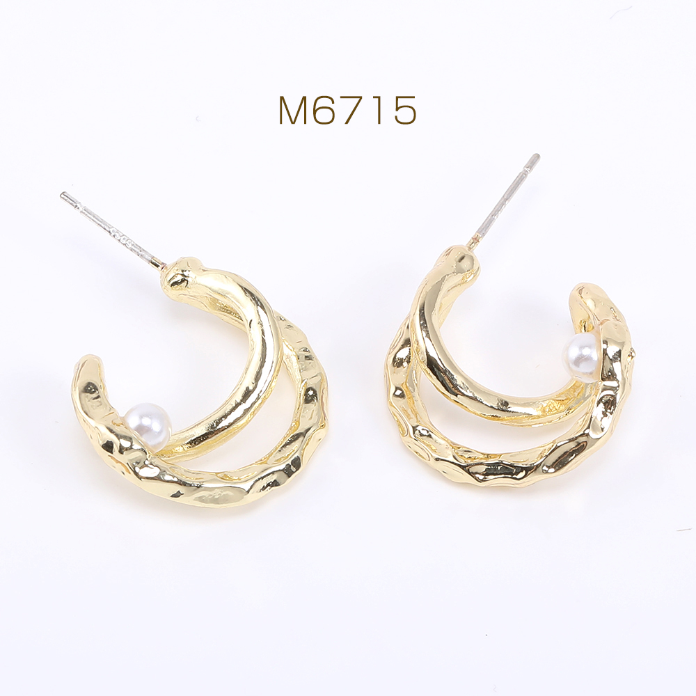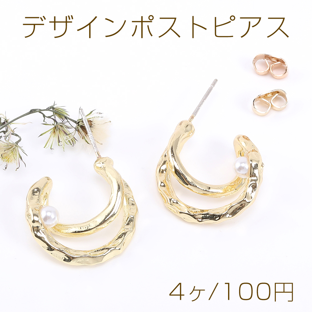 デザインポストピアス 2連フープ パール付き 7×20mm ゴールド【4ヶ】