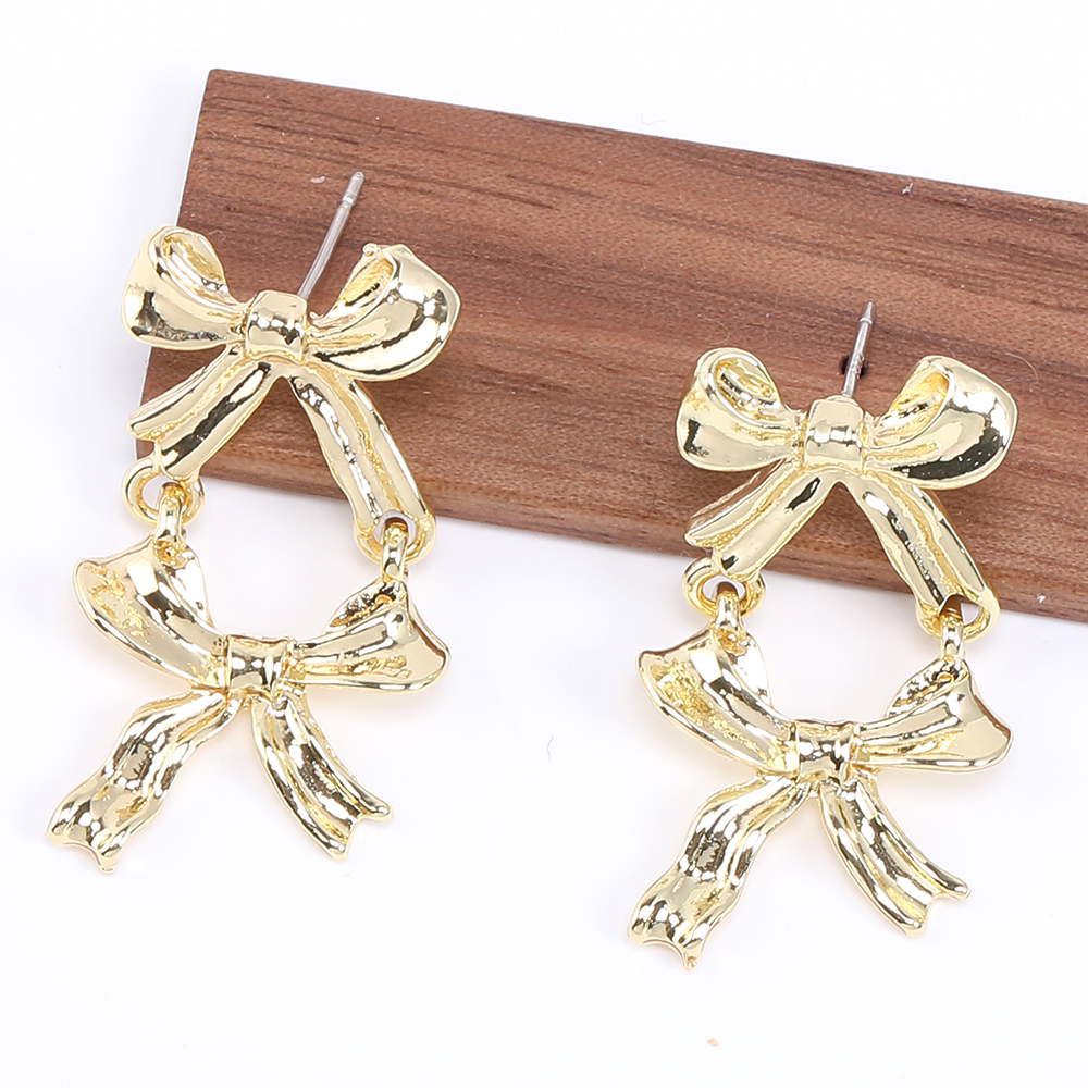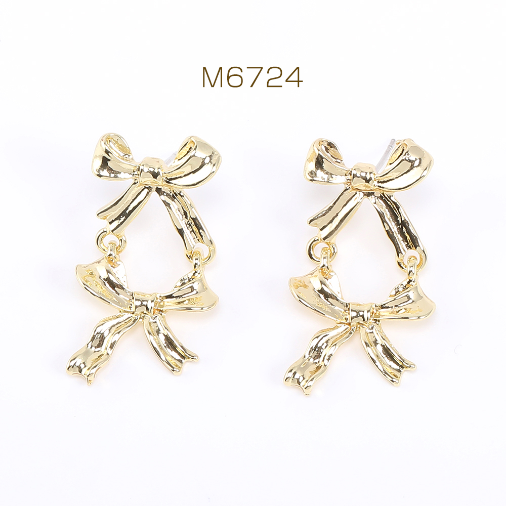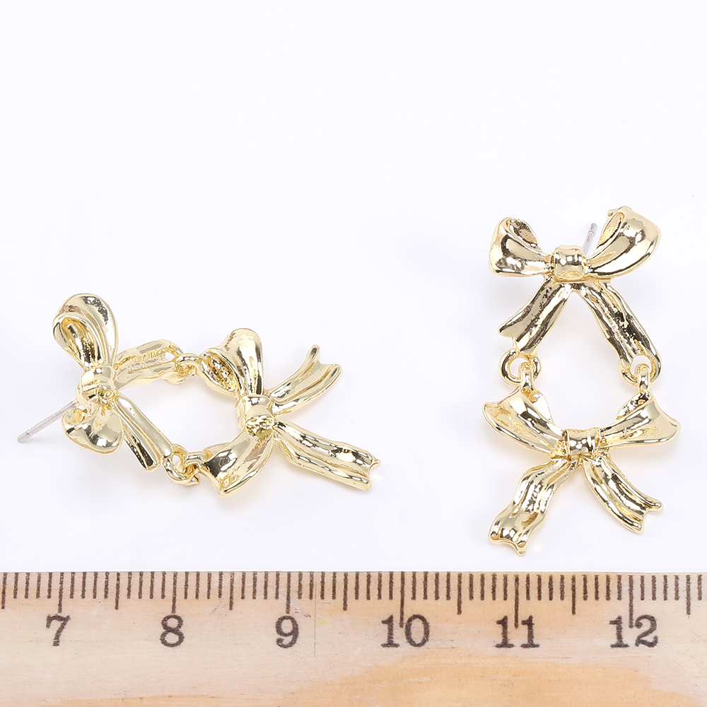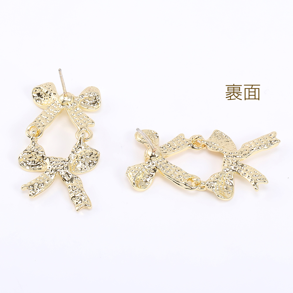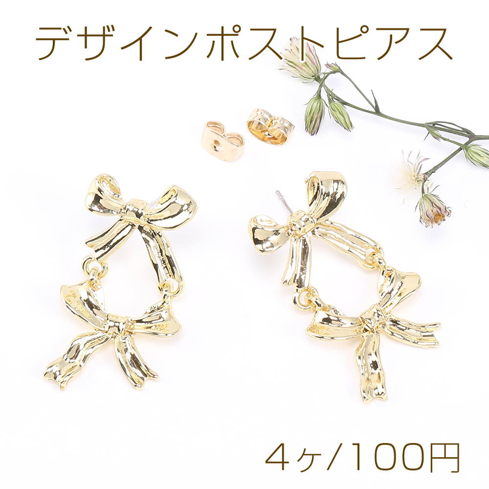 デザインポストピアス 2連リボン 18×32mm ゴールド【4ヶ】