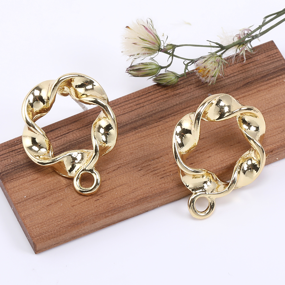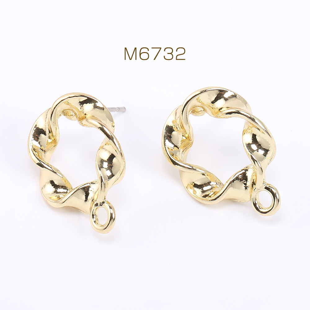 デザインポストピアス フープピアス ツイスト 1カン 15×20mm ゴールド【6ヶ】