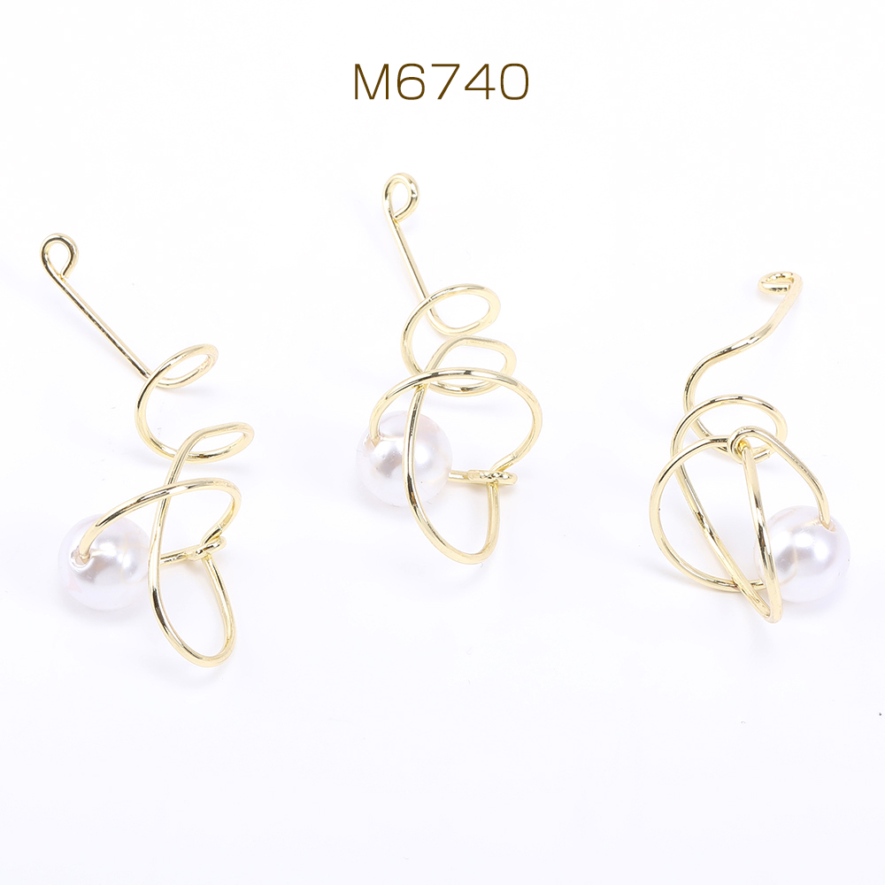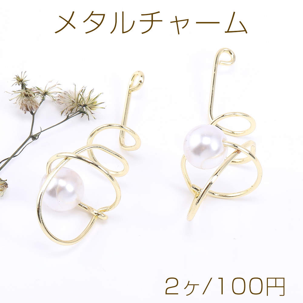 メタルチャーム ワイヤーチャーム デザインA パール付き ゴールド【2ヶ】