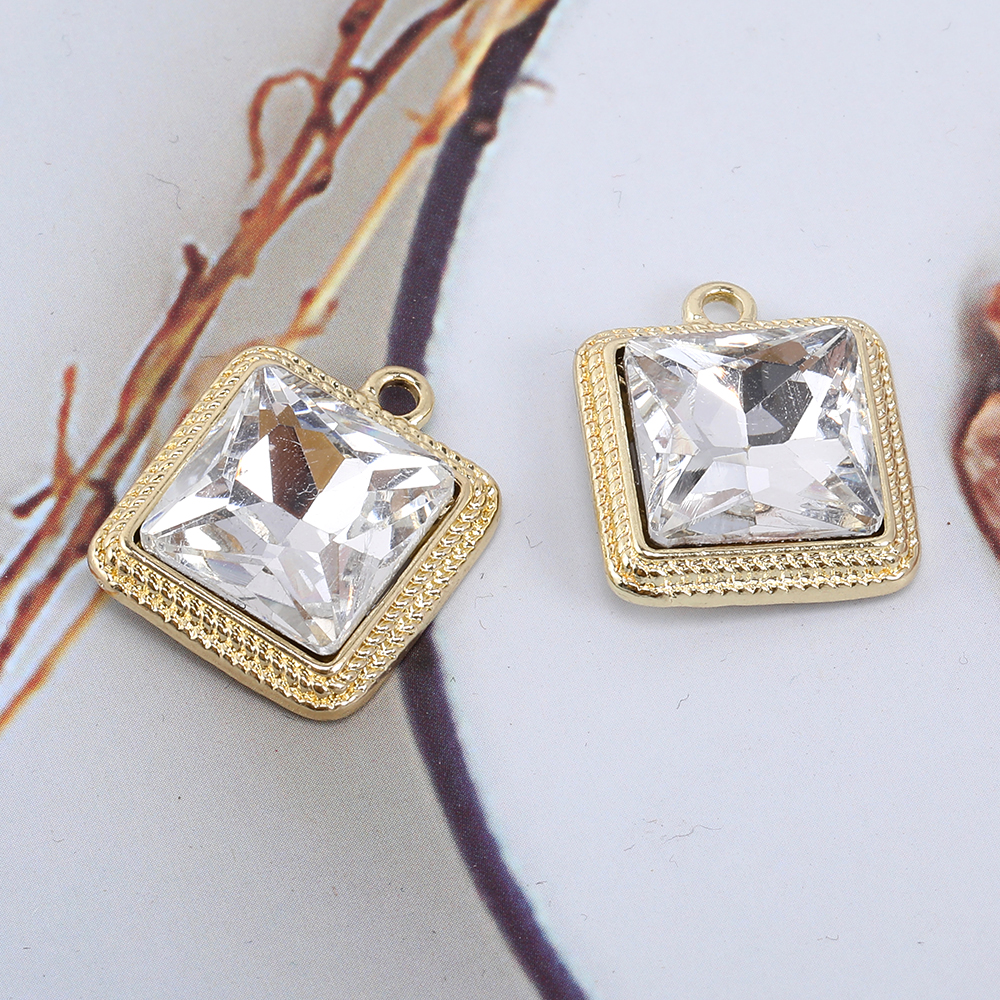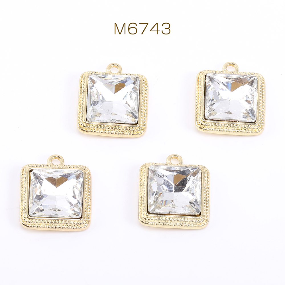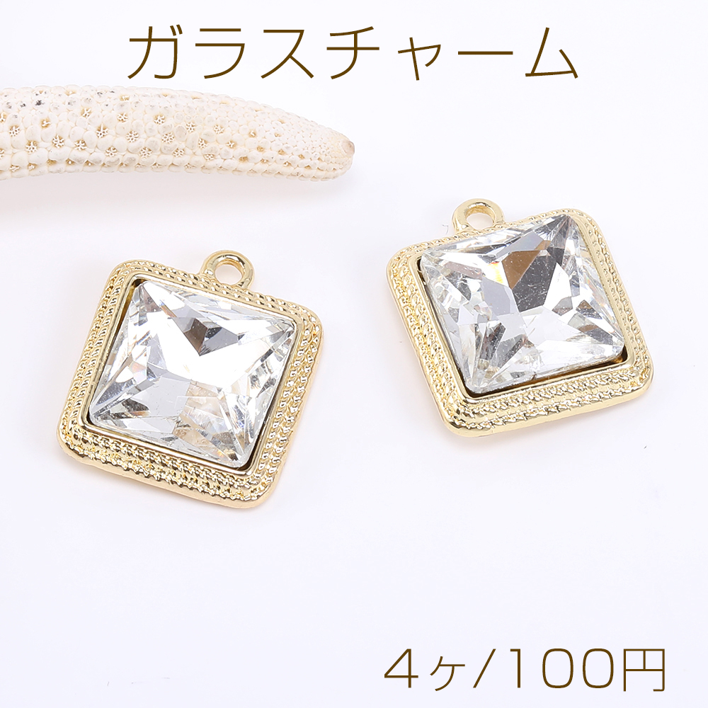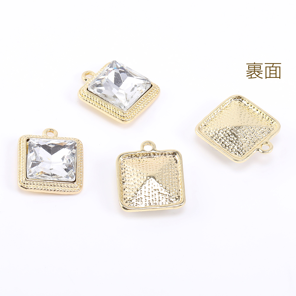 ガラスチャーム スクエア 1カン 17×21mm ゴールド【4ヶ】