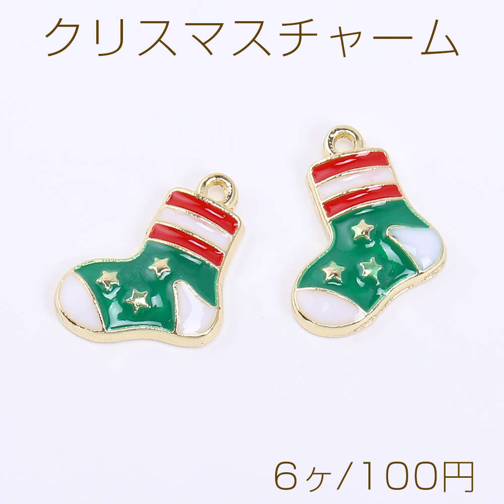 クリスマスチャーム ブーツ エポ付き 1カン 12×15mm ゴールド【6ヶ】