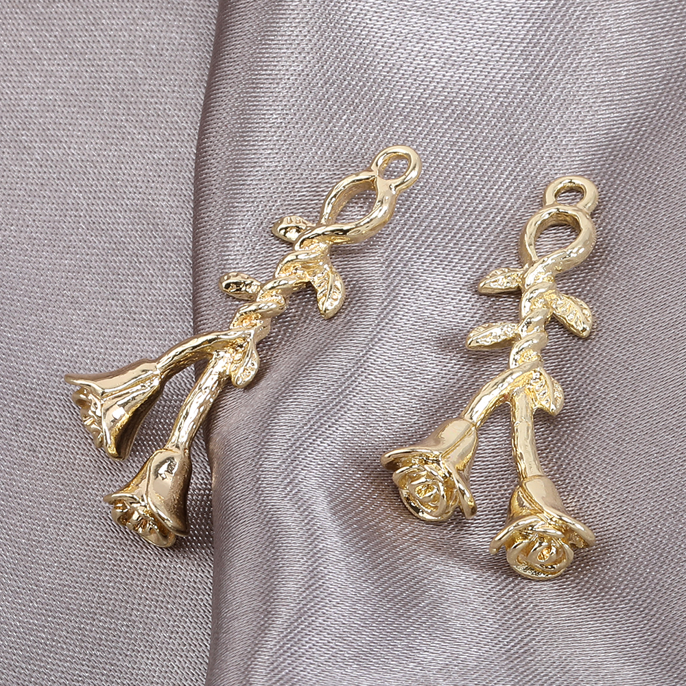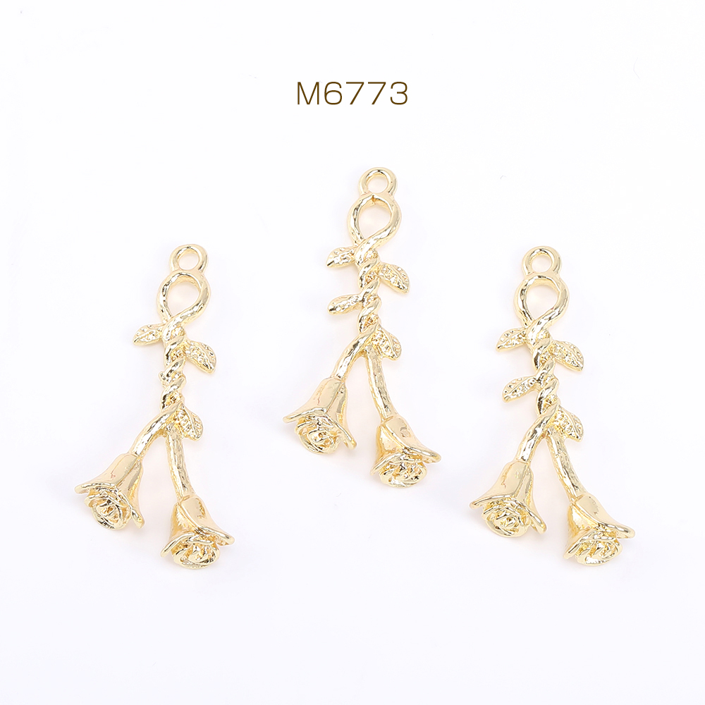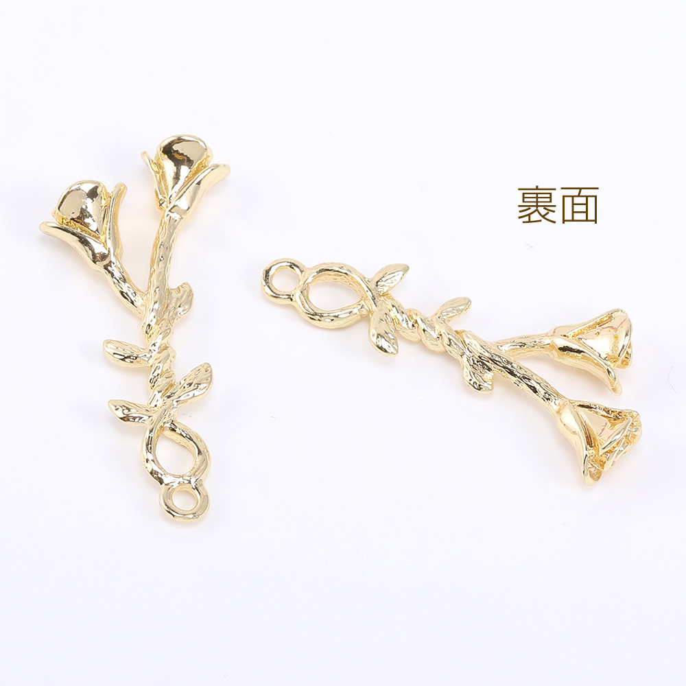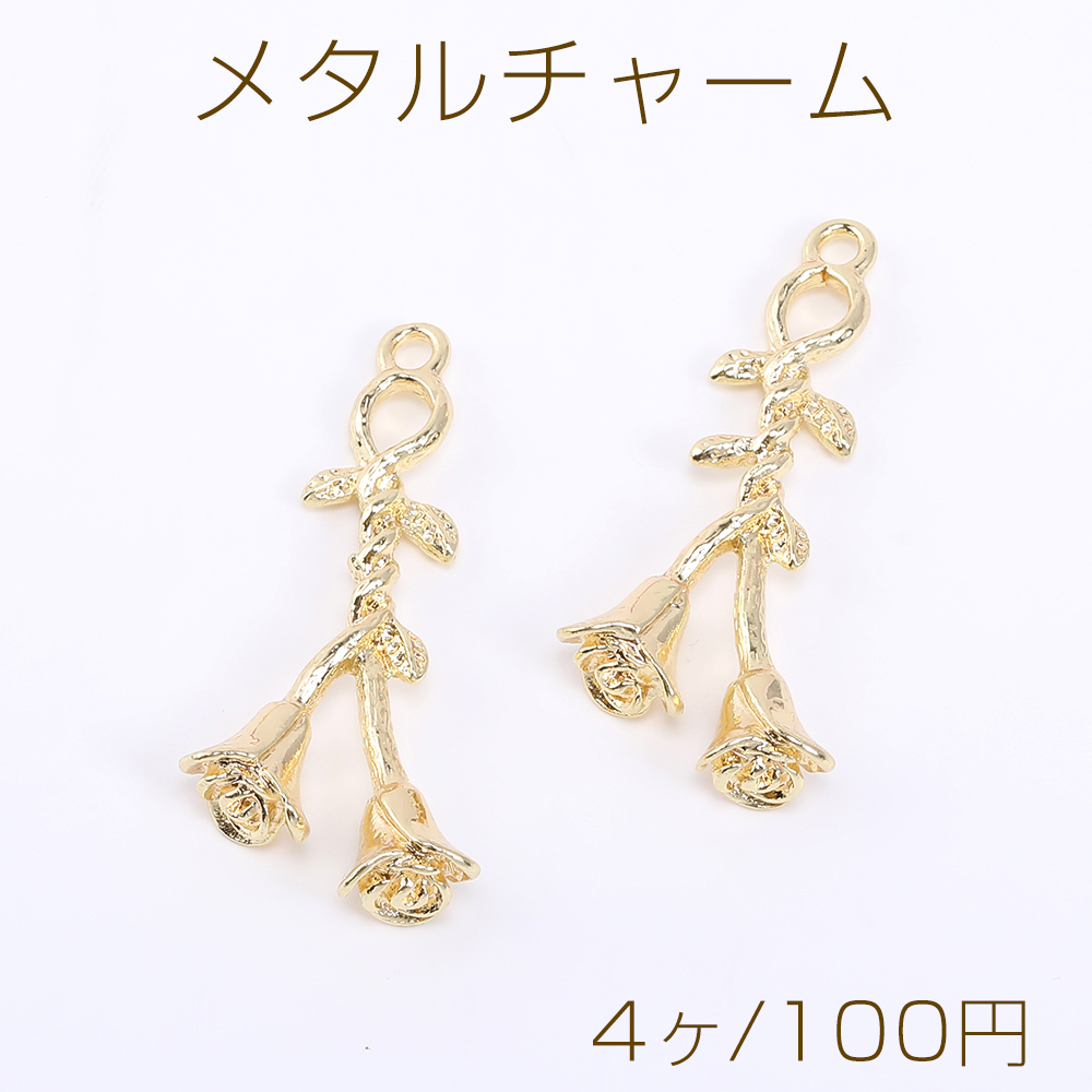 メタルチャーム バラ 1カン 15×34mm ゴールド【4ヶ】