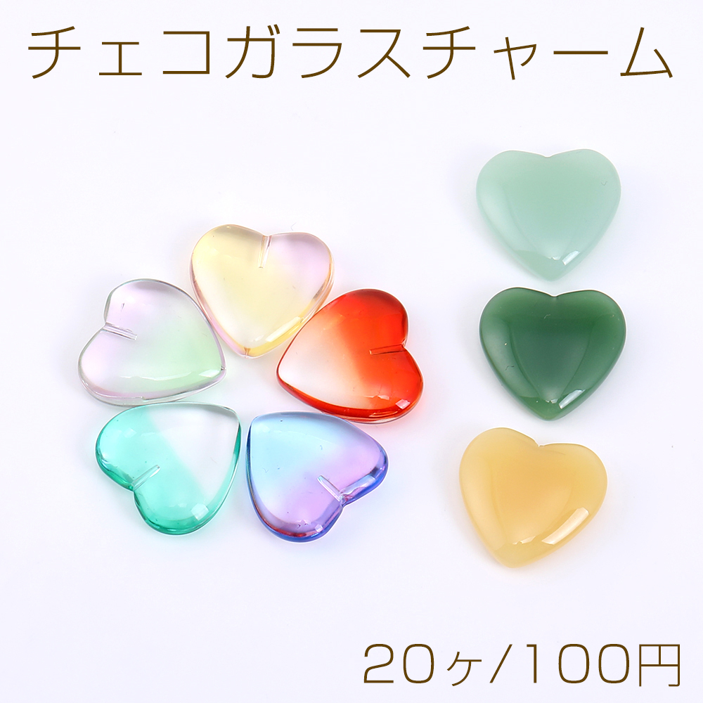 チェコガラスチャーム ハート 片穴 20×20mm 全11色
