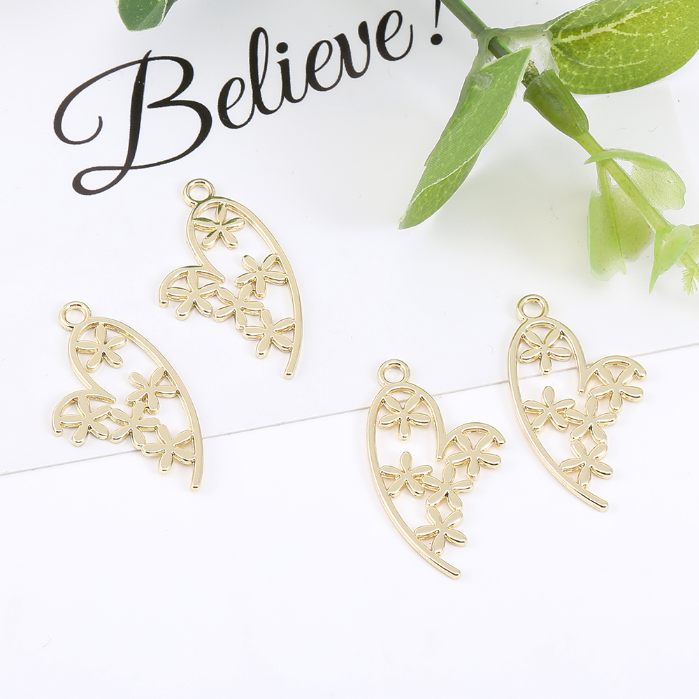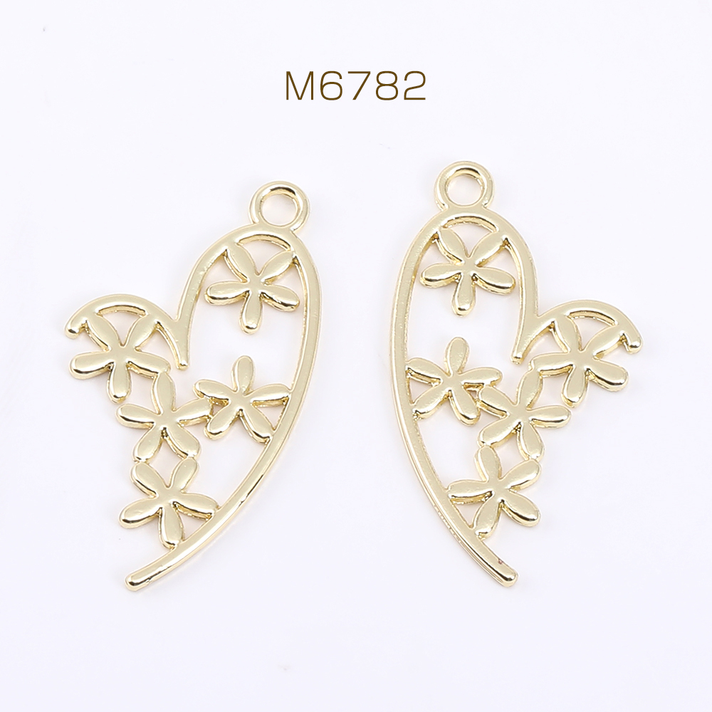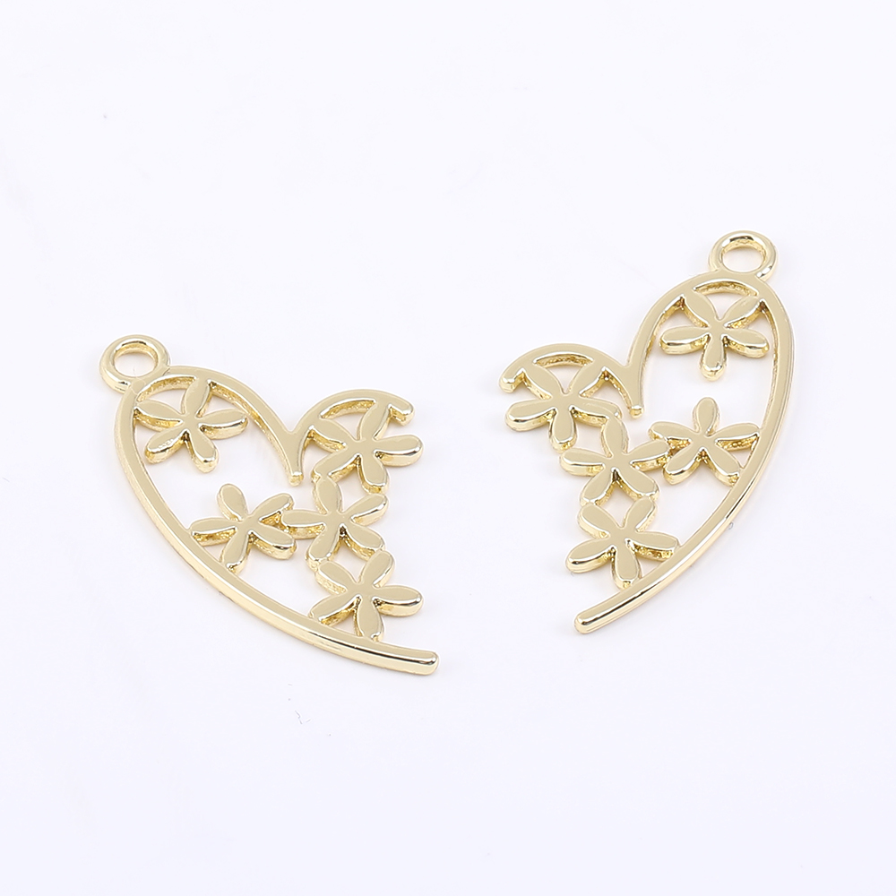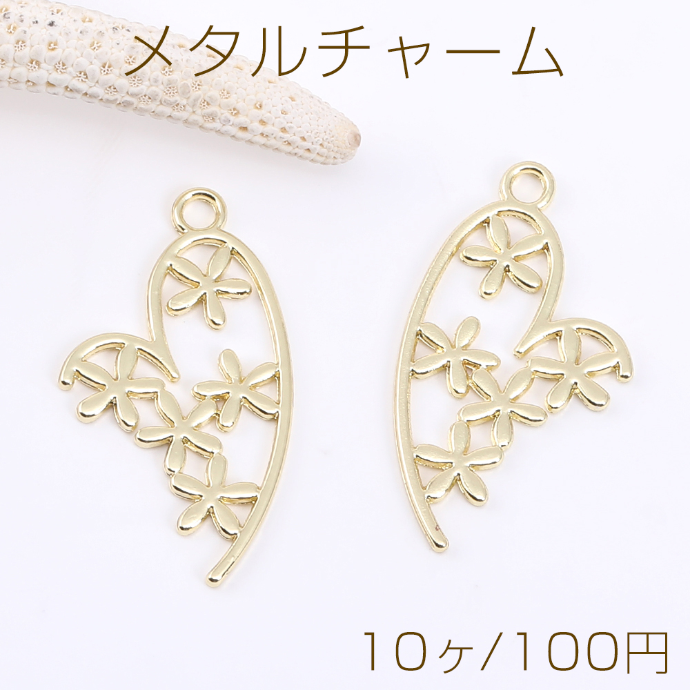 メタルチャーム ハーフハートとフラワー 1カン 17×30mm ゴールド【10ヶ】