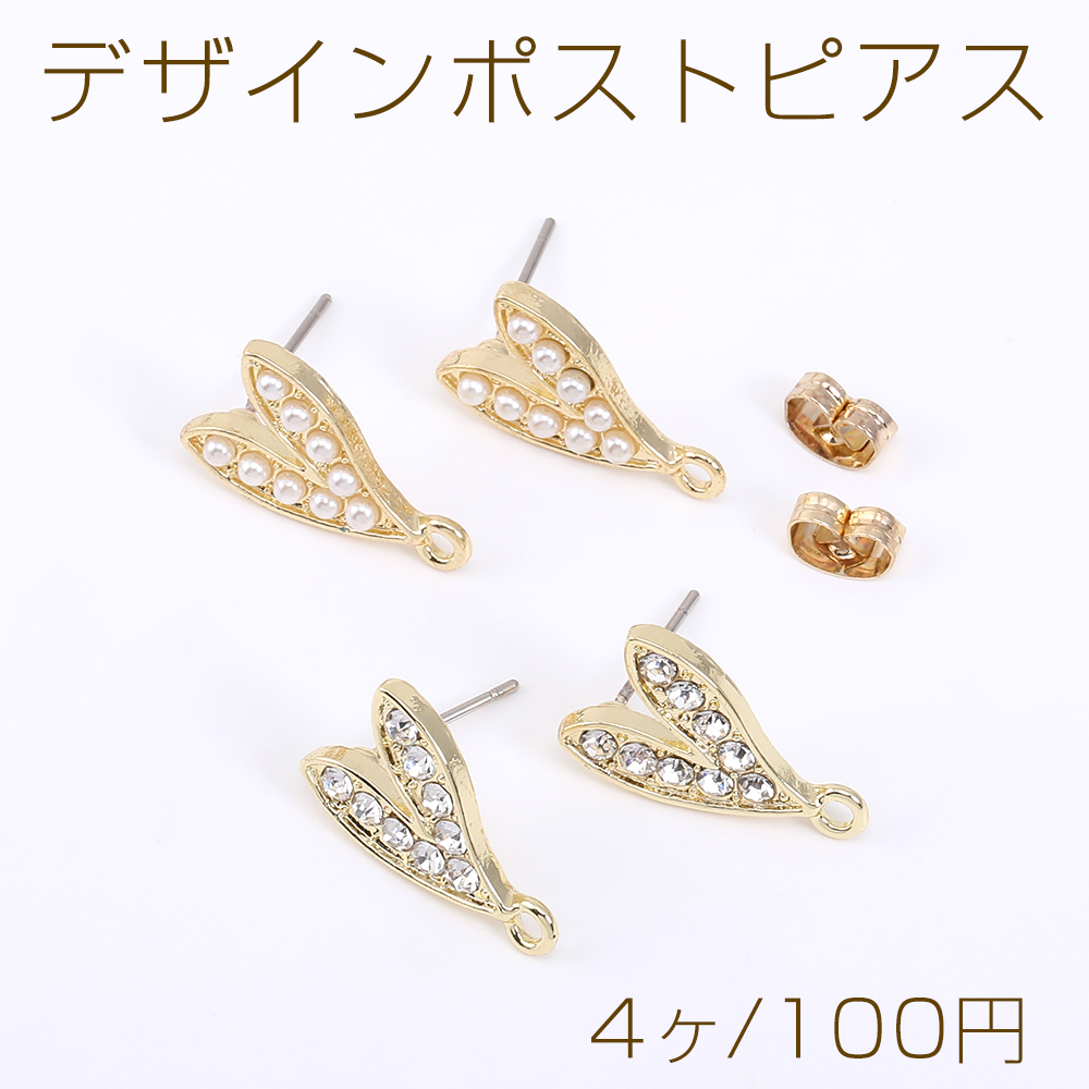 デザインポストピアス ハート 1カン 11×17mm ゴールド【4ヶ】