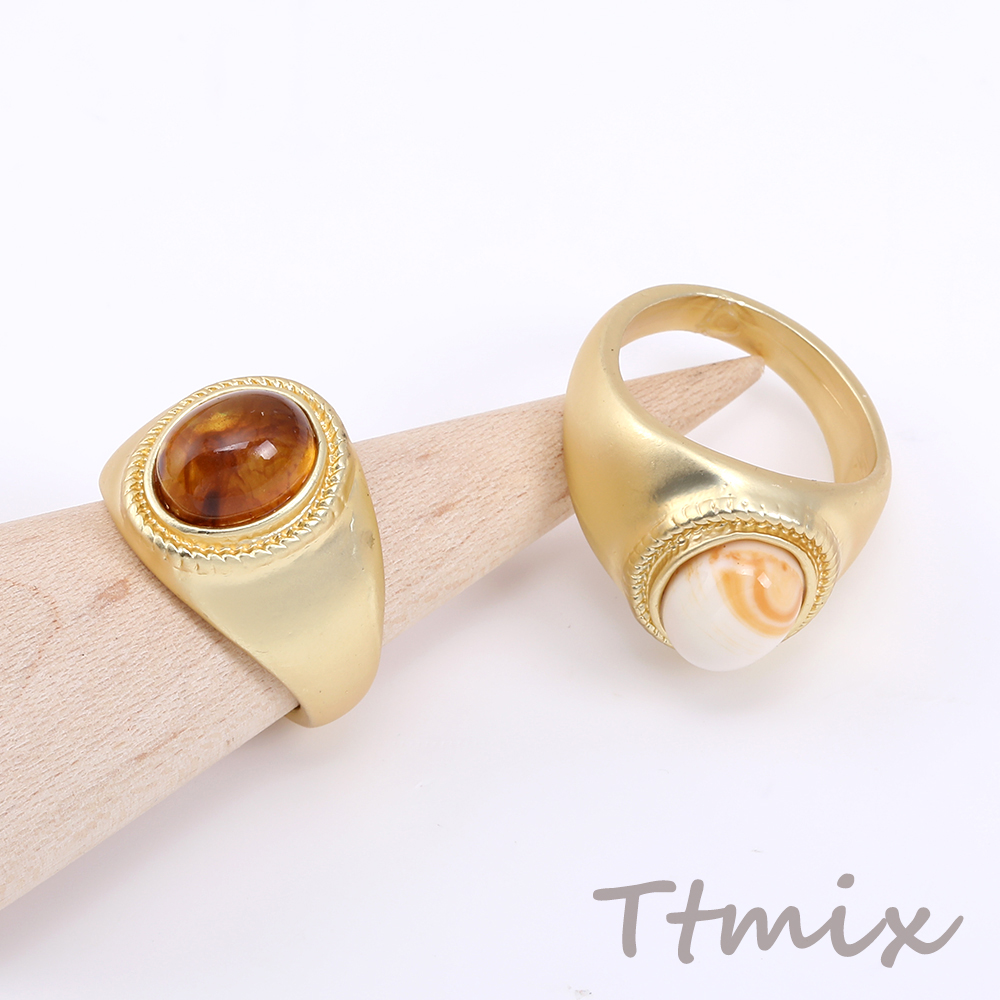 ファッションリング 指輪 オーバルD 樹脂貼り【2ヶ】