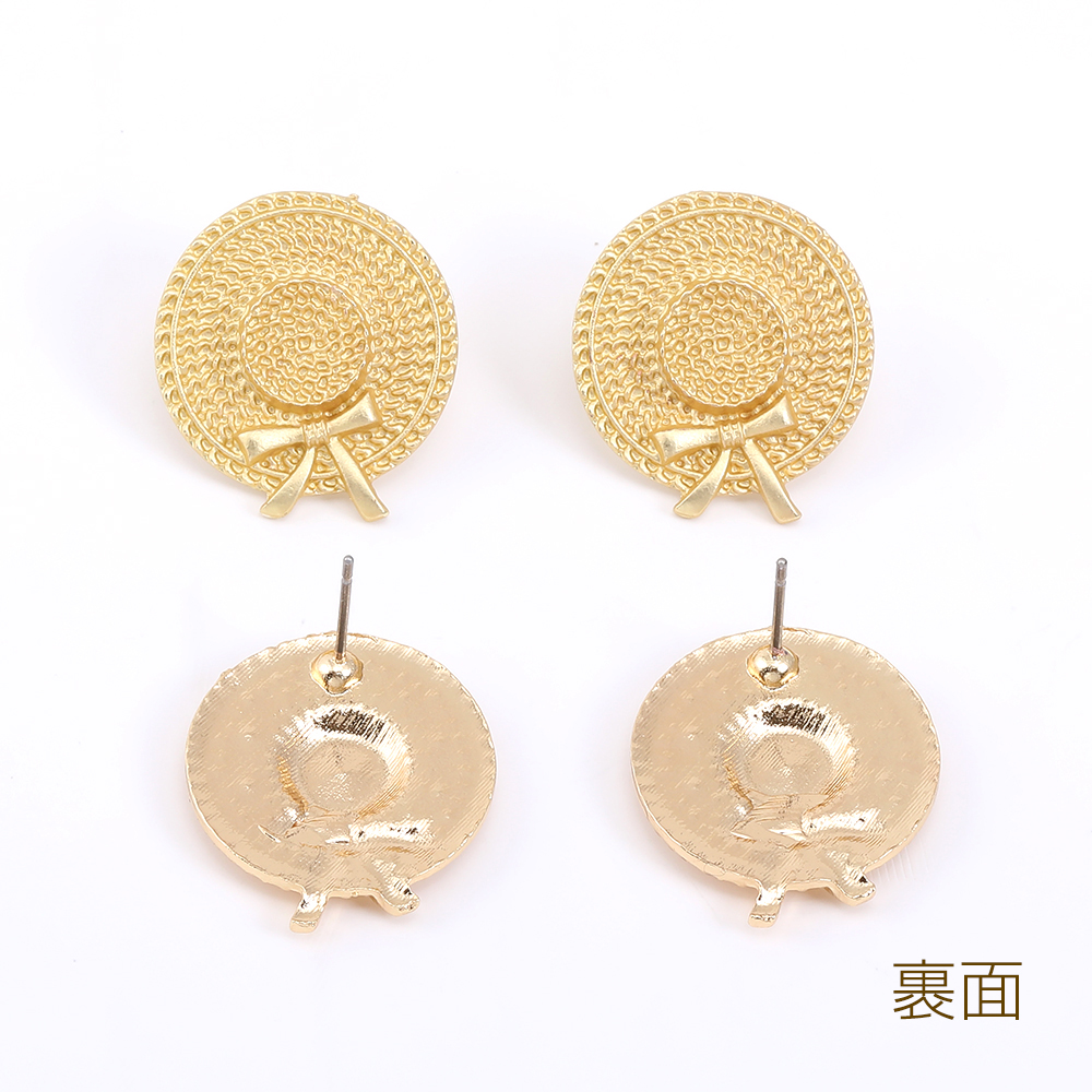 デザインポストピアス 帽子型 リボン 22mm【4ヶ】
