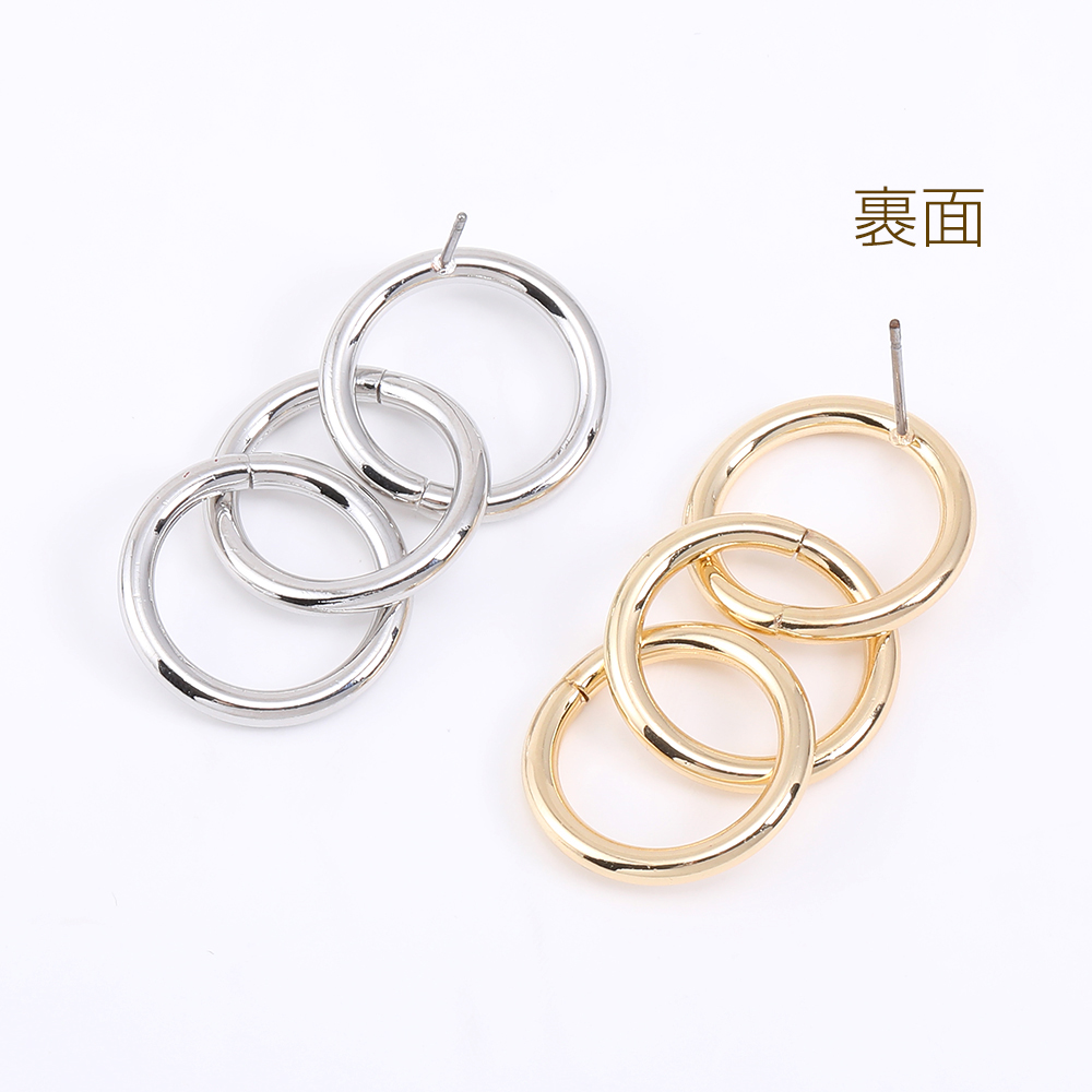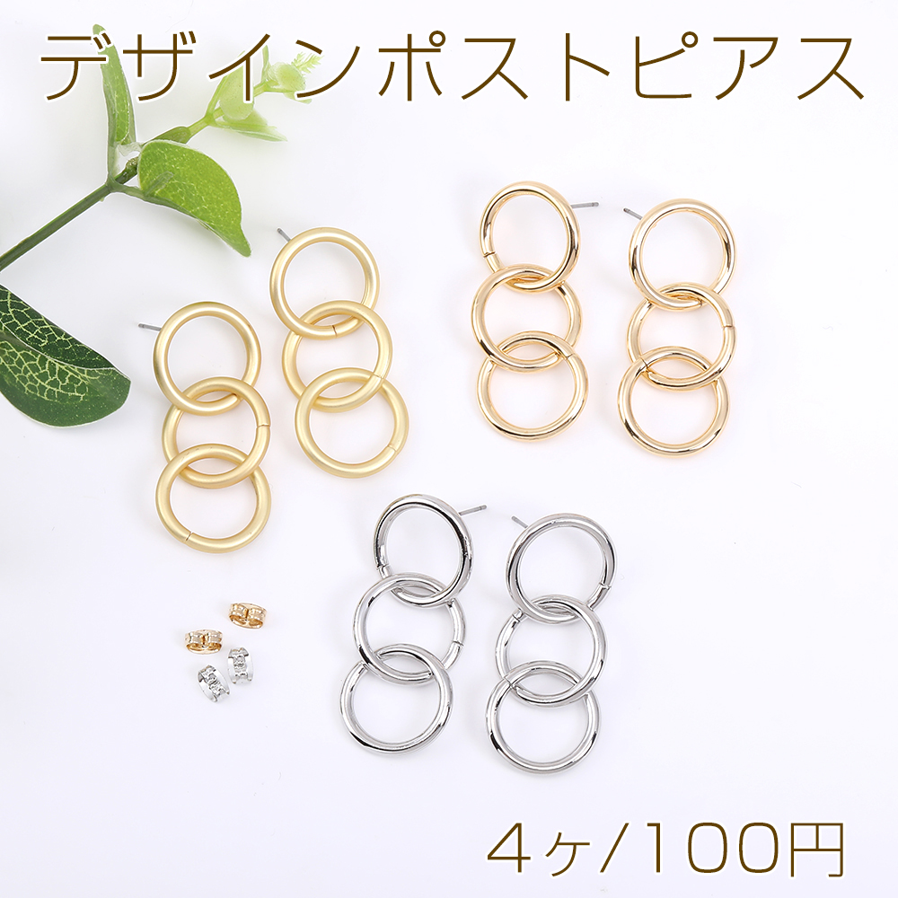 デザインポストピアス 3連チェーンピアス 丸型 20×50mm【4ヶ】