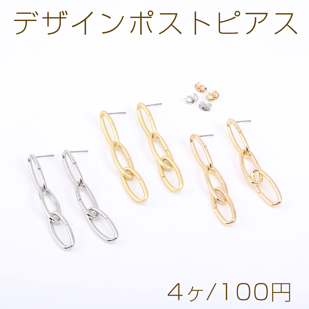デザインポストピアス 3連チェーンピアス オーバル 10×58mm【4ヶ】