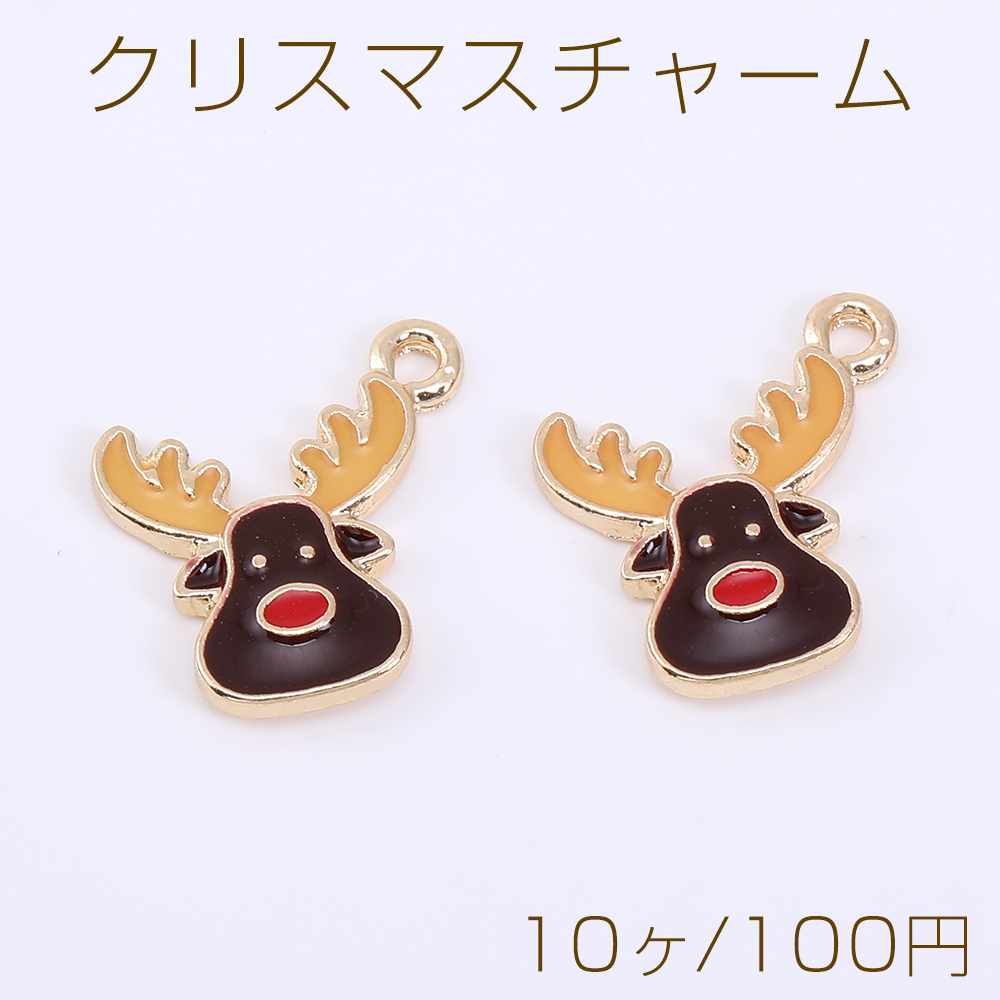 クリスマスチャーム トナカイ エポ付き 1カン 16×19mm ゴールド【10ヶ】