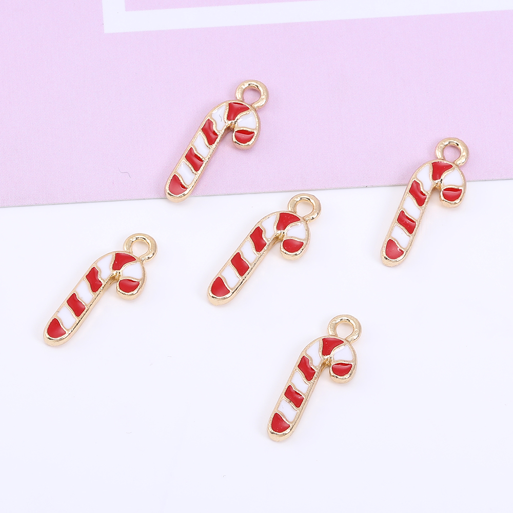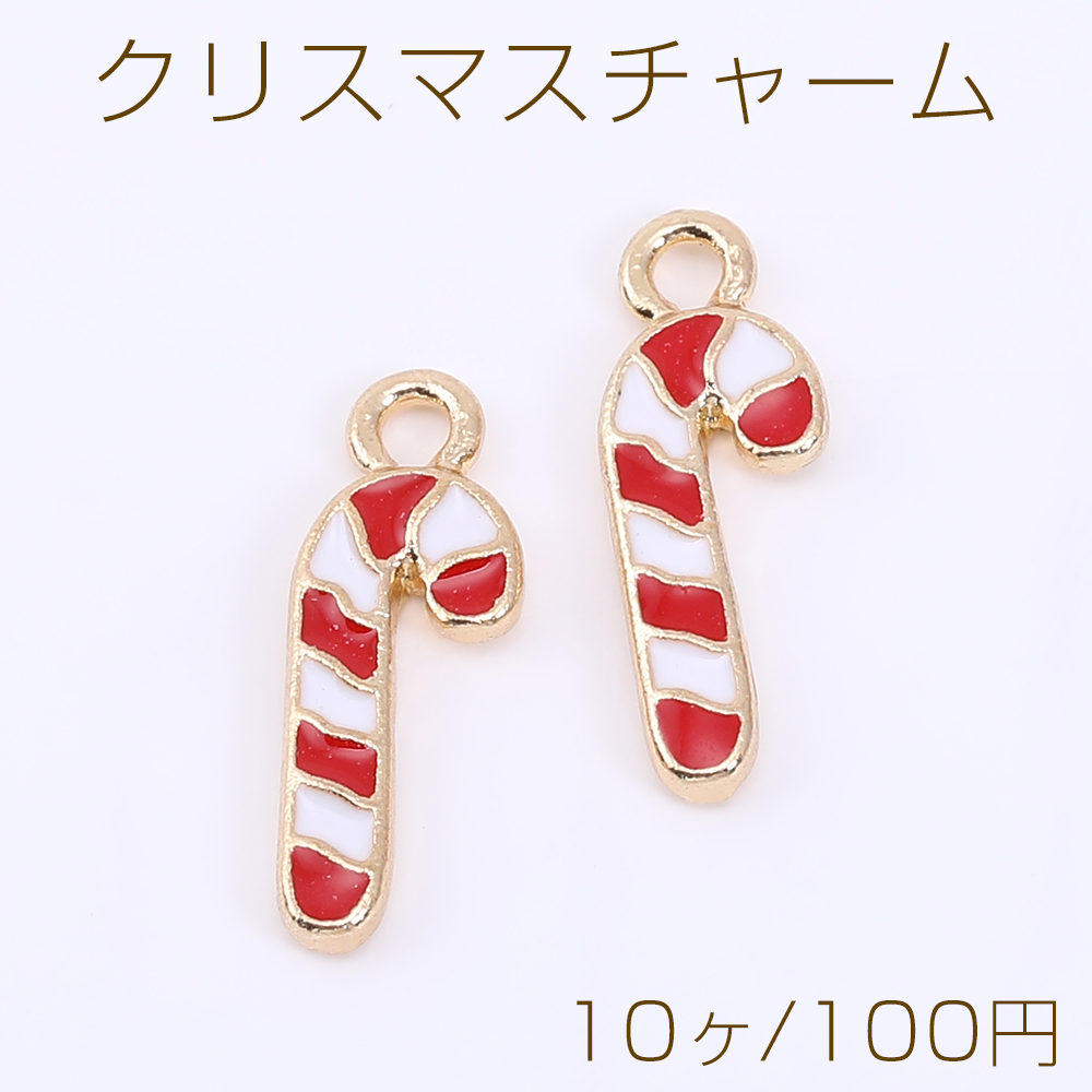 クリスマスチャーム ステッキ エポ付き 1カン 6×17mm ゴールド【10ヶ】