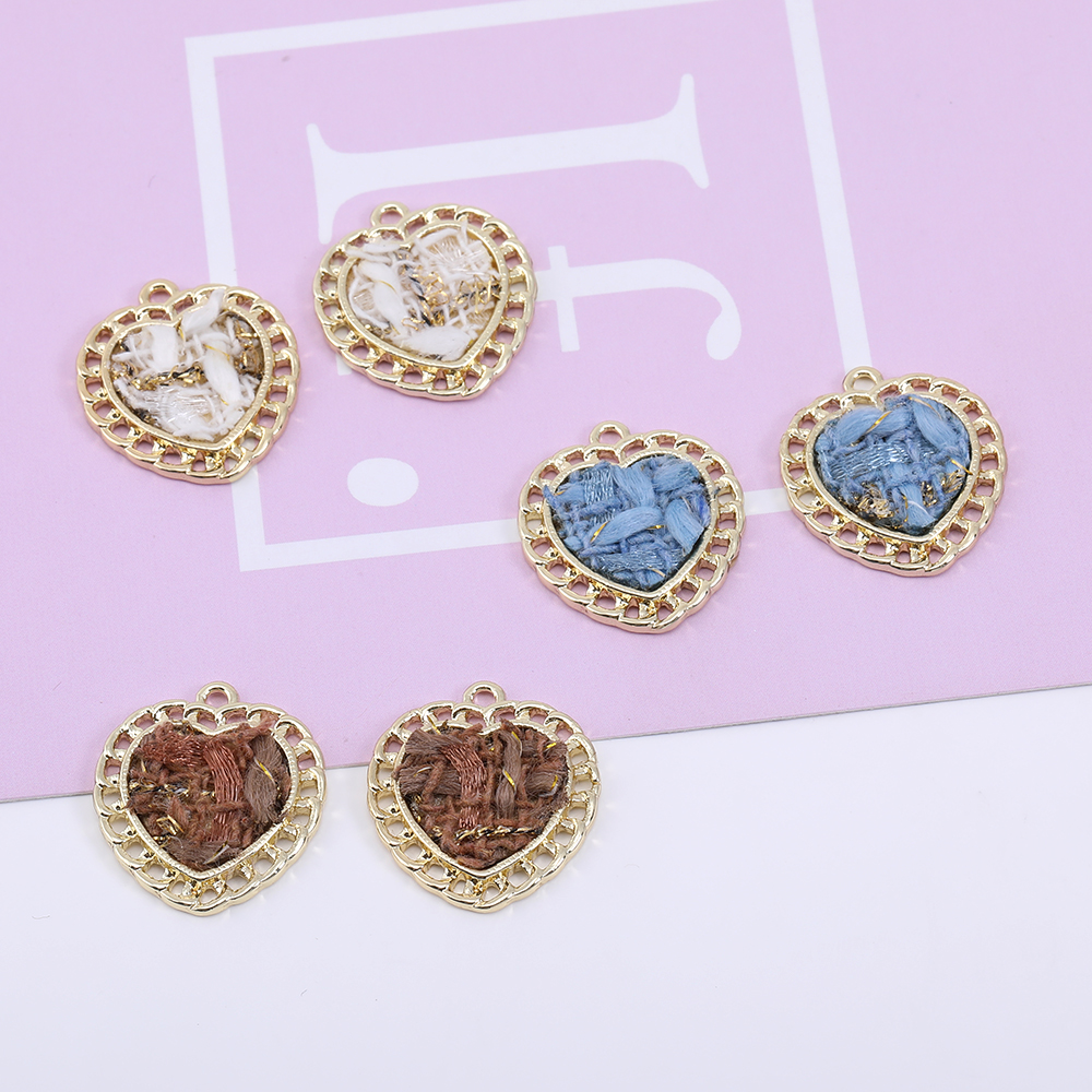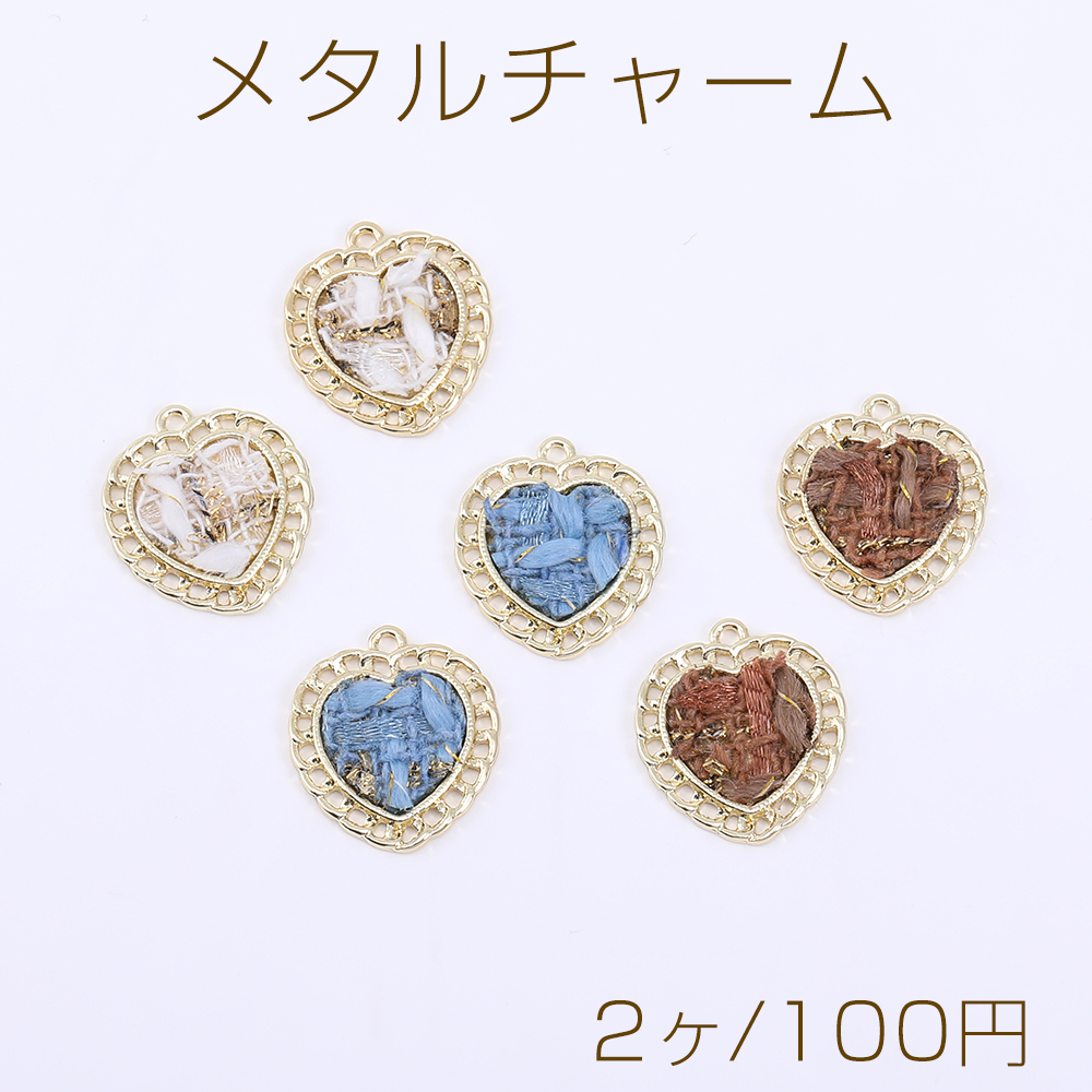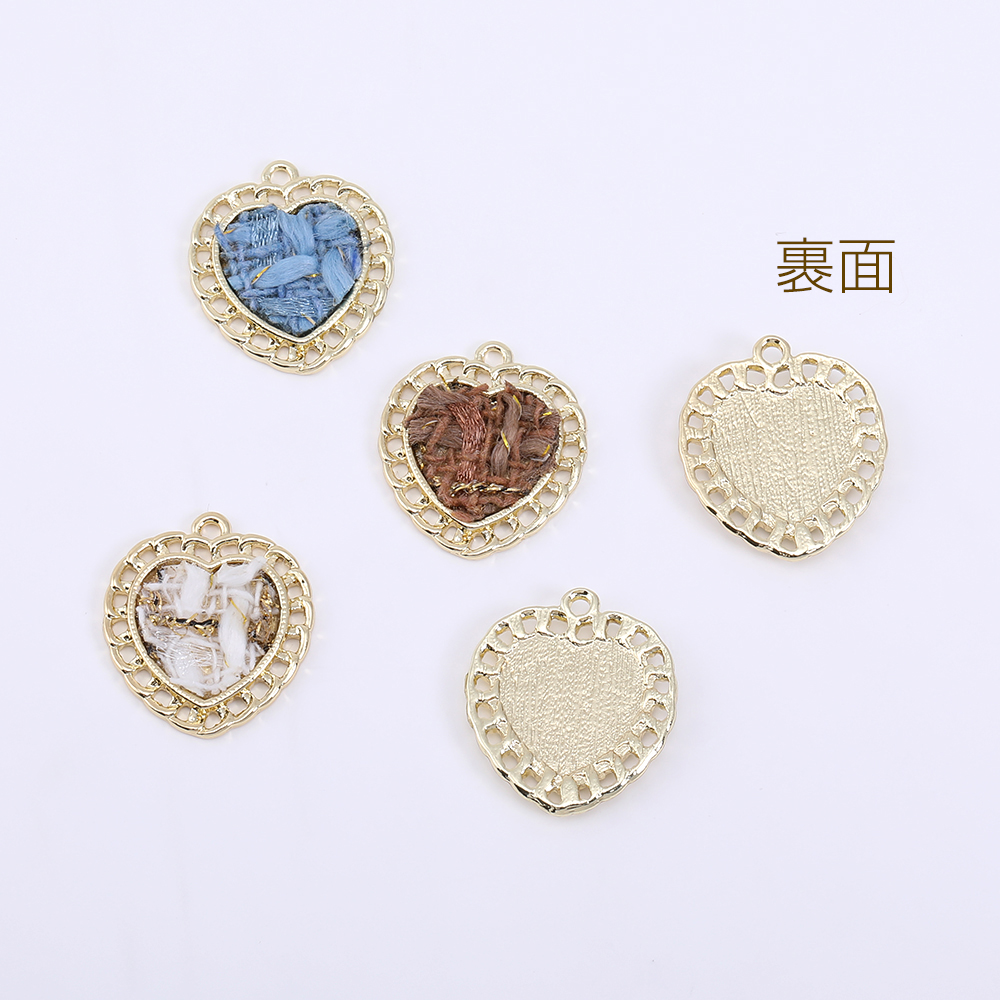 メタルチャーム ハート 麻布貼り 1カン 21×23mm ゴールド【2ヶ】