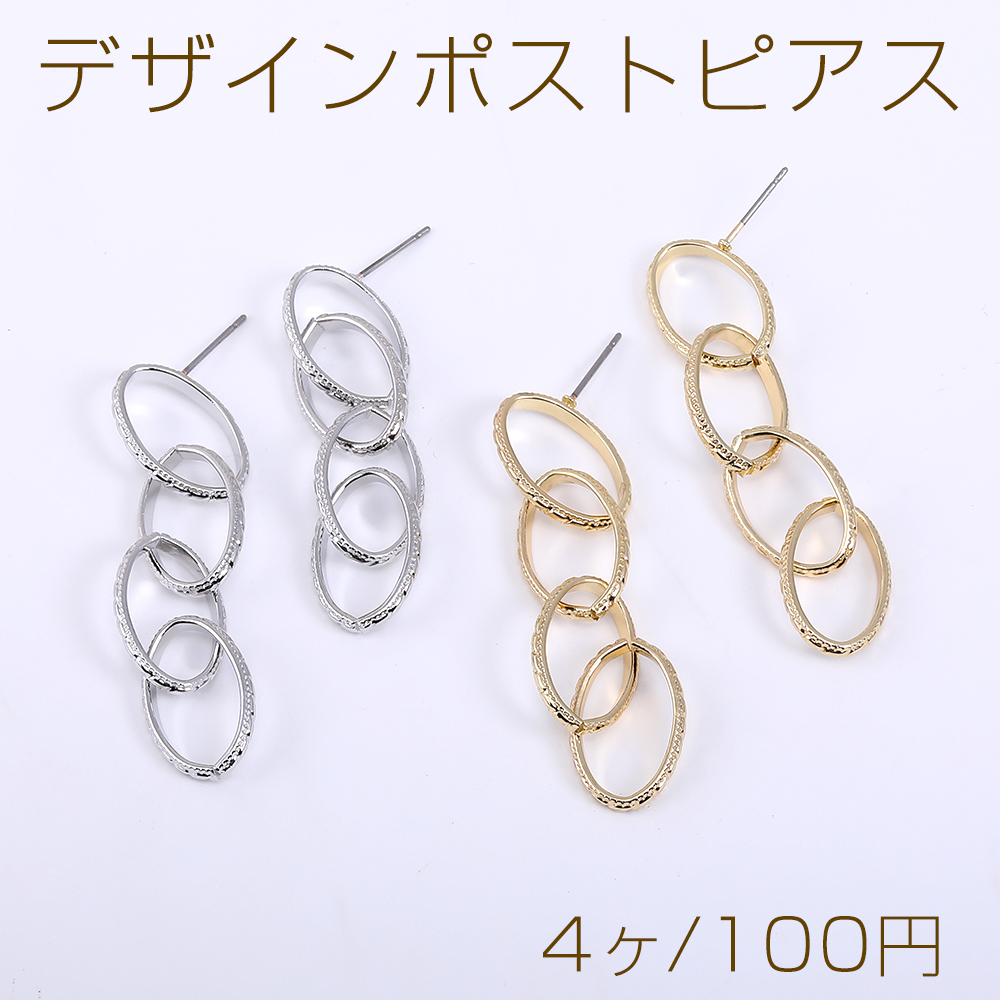 デザインポストピアス 4連チェーンピアス オーバル 13×70mm【4ヶ】