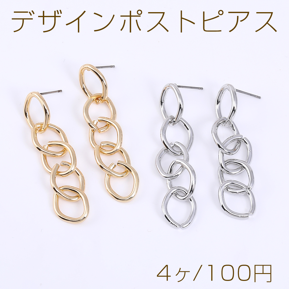 デザインポストピアス 5連チェーンピアス ホースアイ 11×55mm【4ヶ】