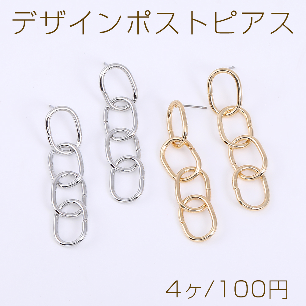 デザインポストピアス 4連チェーンピアス オーバル 12×58mm【4ヶ】