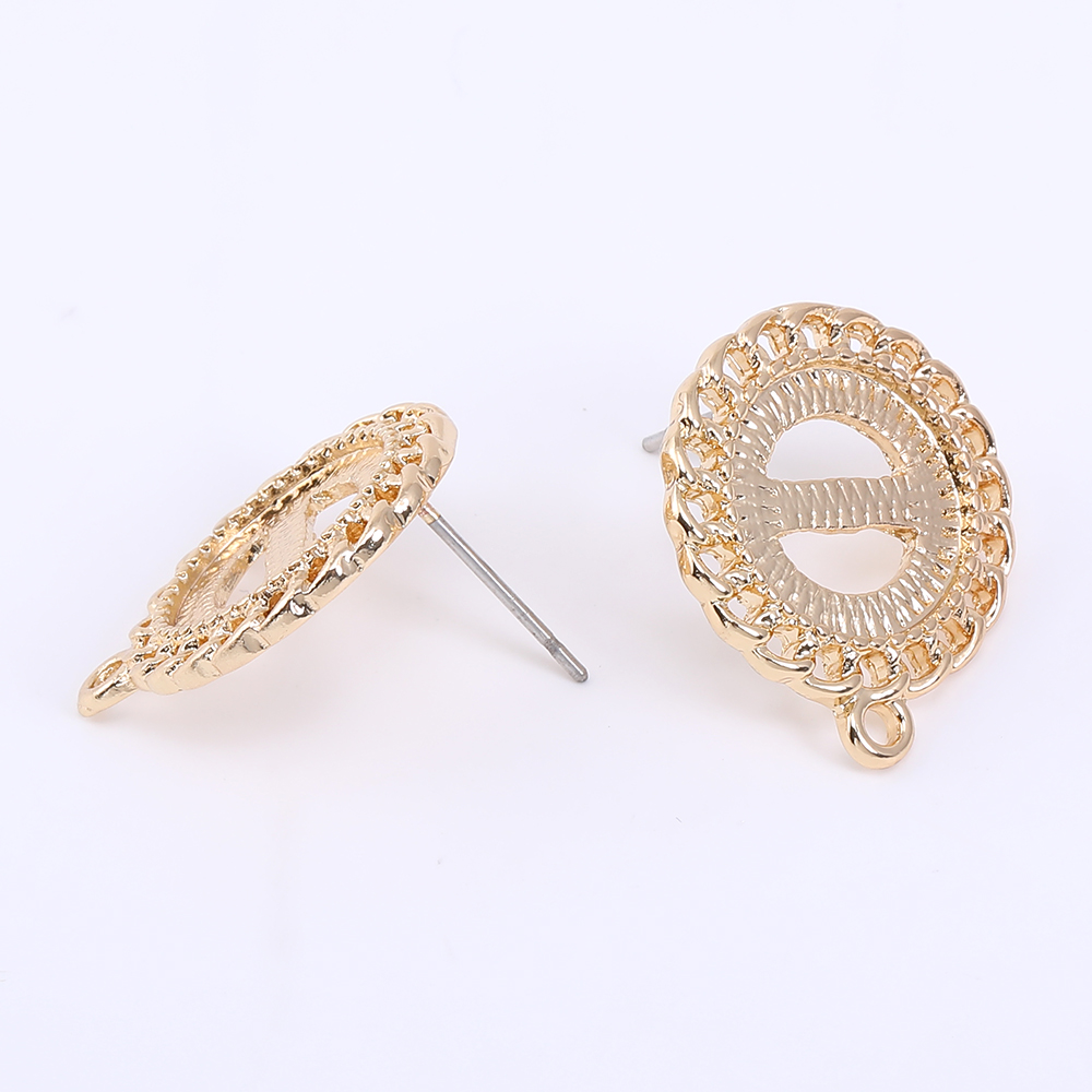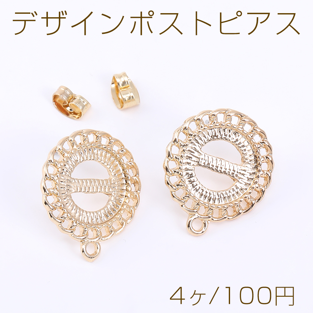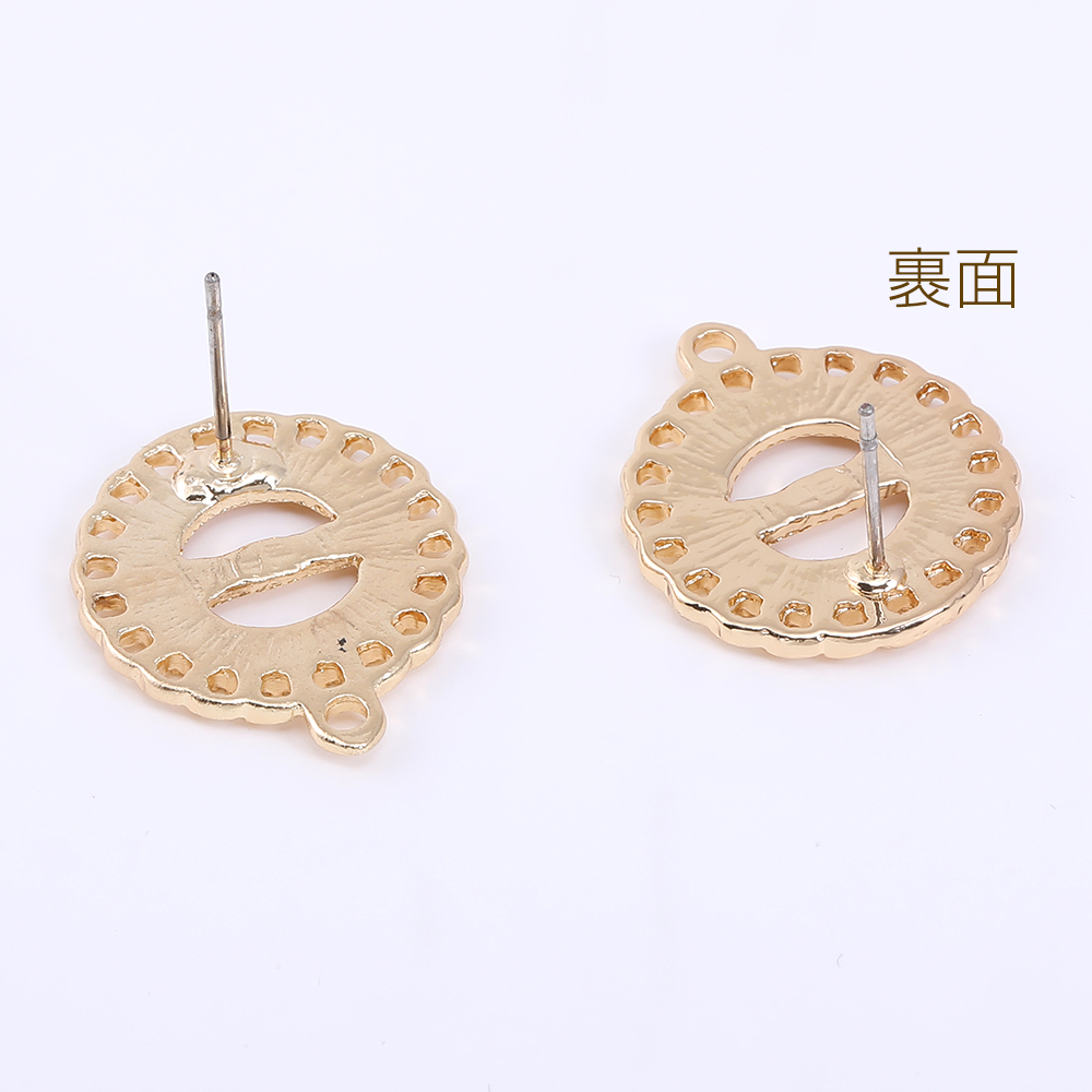 デザインポストピアス レース丸型ミール皿 内径約12mm ゴールド【4ヶ】