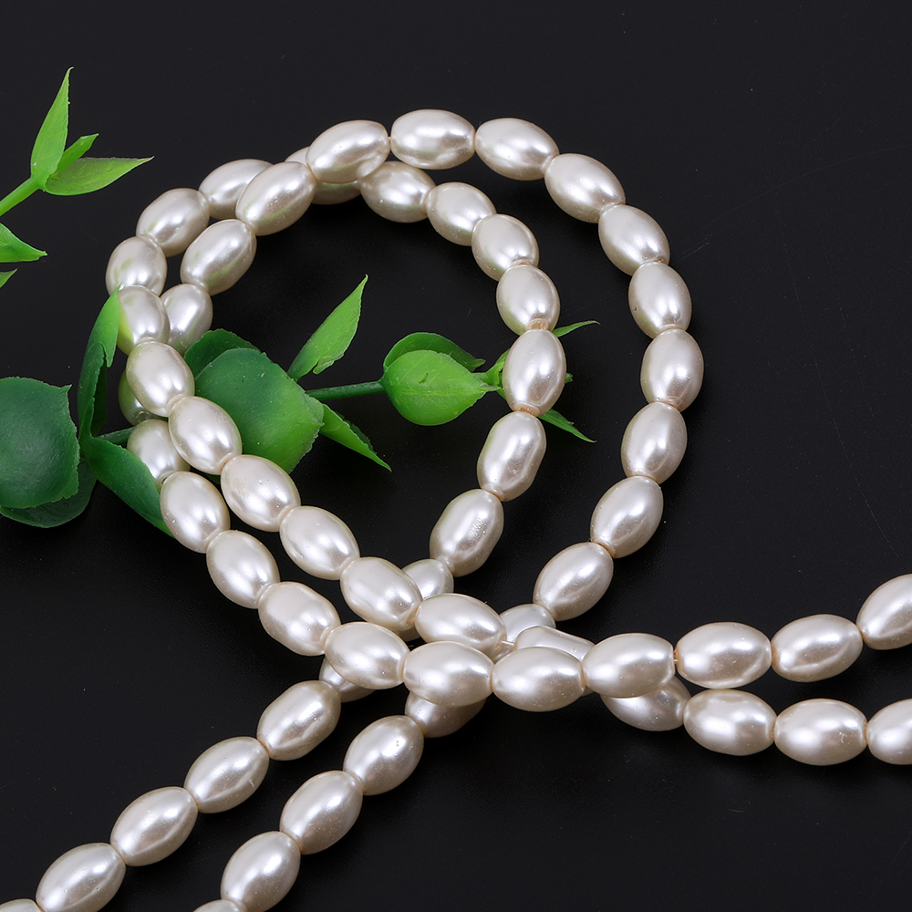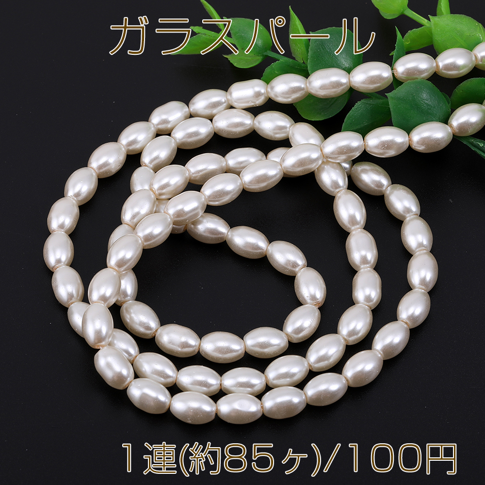 ガラスパール ライス 6×9mm ベージュ【1連(約85ヶ)】