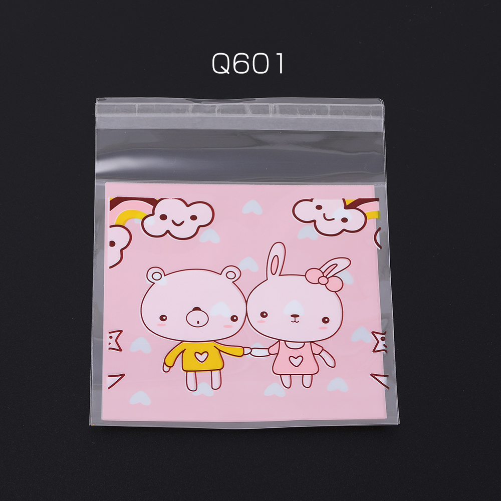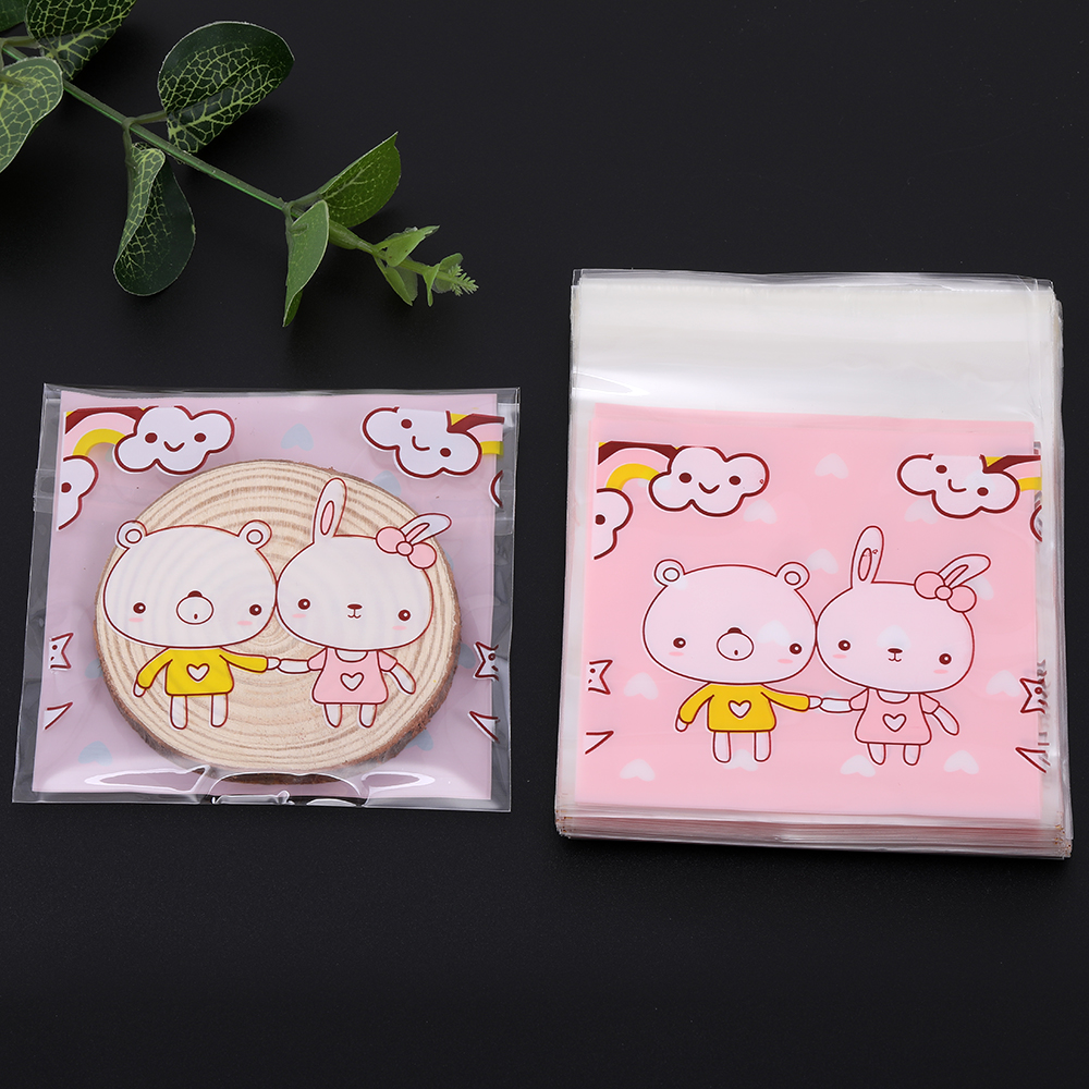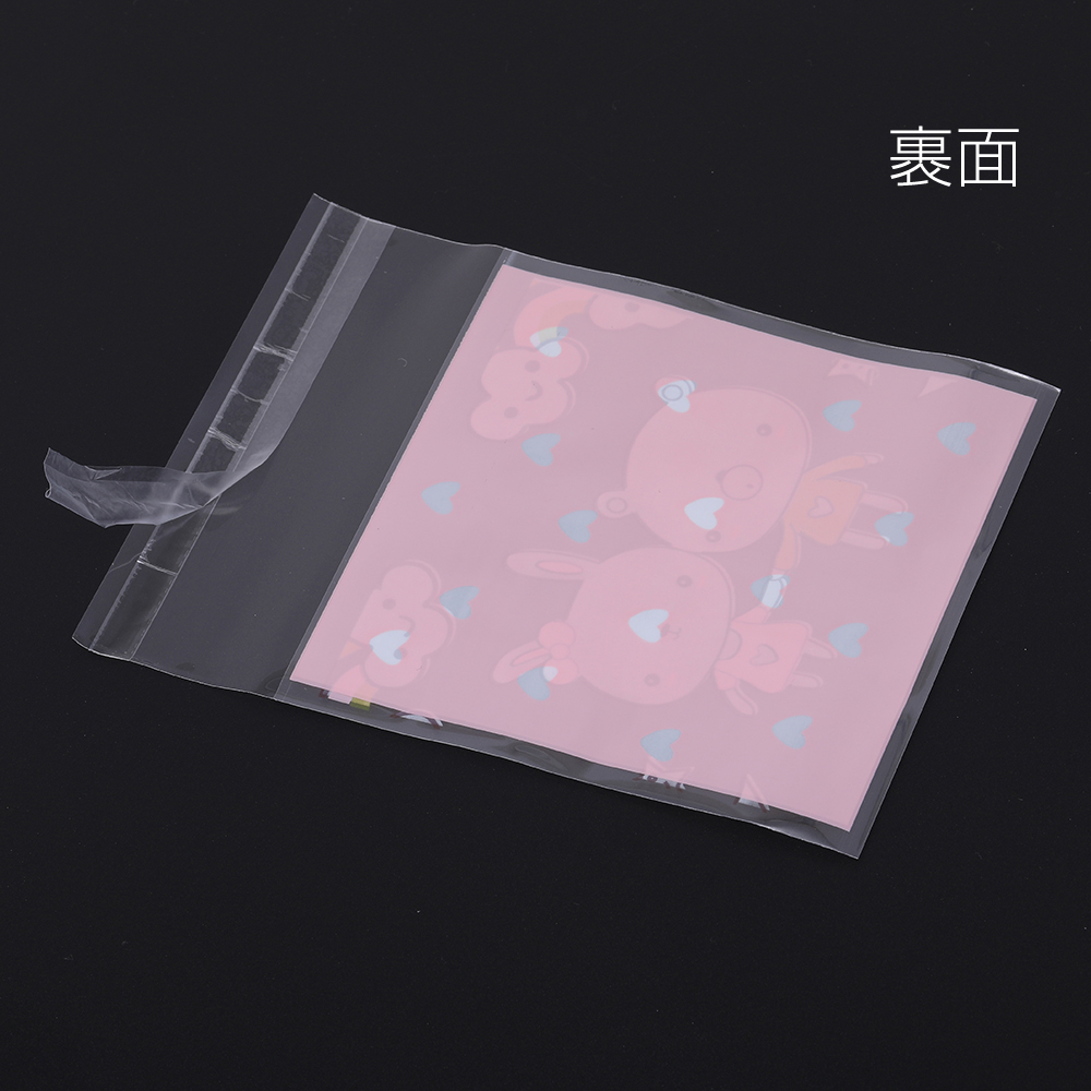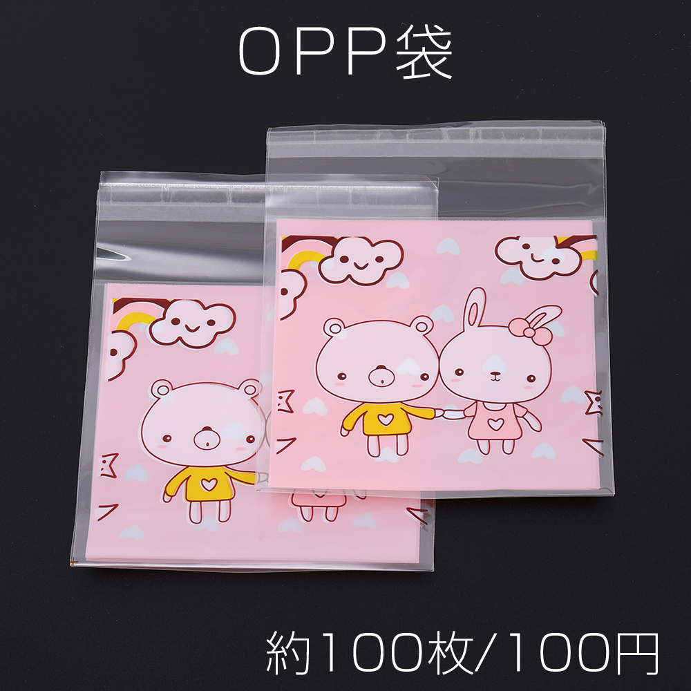 OPP袋 透明テープ付き 10×13cm クマ&兎 ピンク【約100枚】