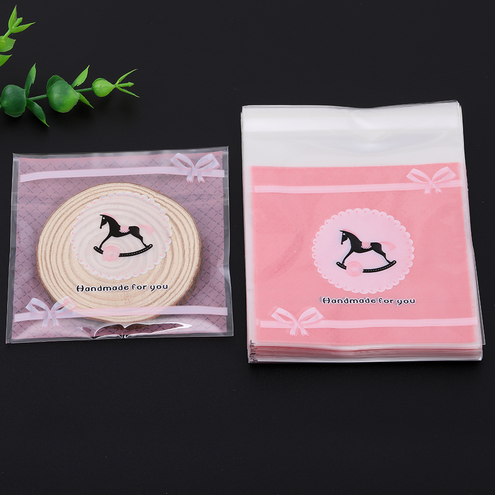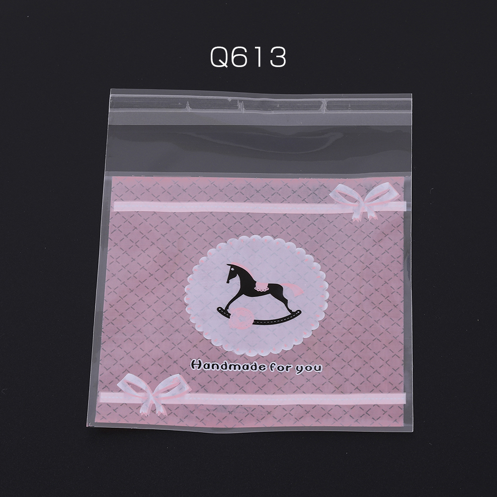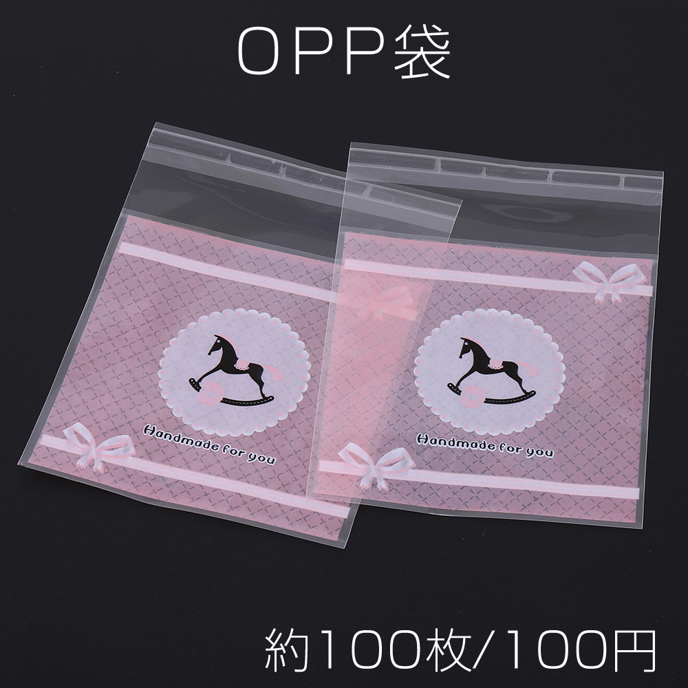OPP袋 透明テープ付き 10×13cm 木馬 ピンク【約100枚】