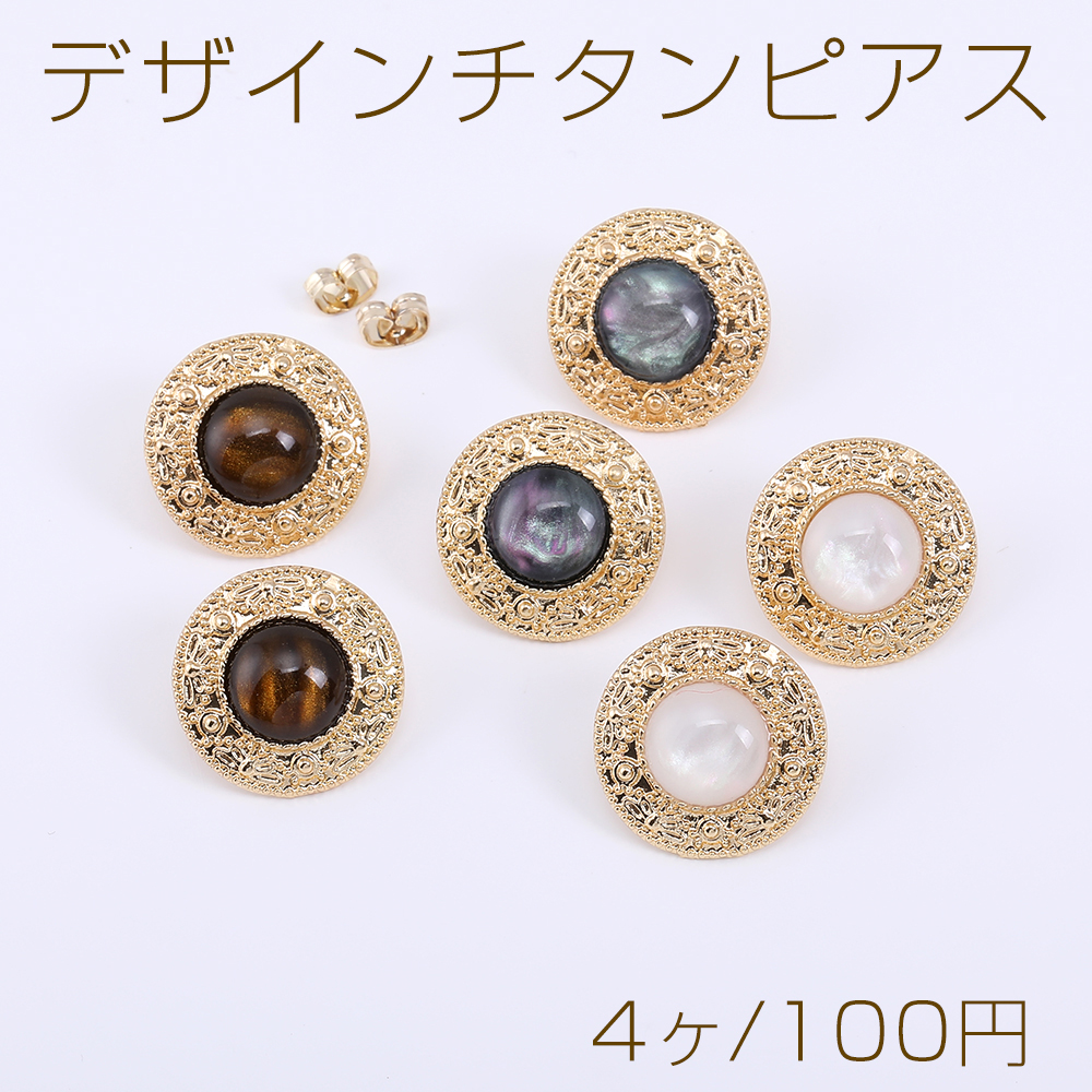 デザインチタンピアス レース丸型B 樹脂貼り【4ヶ】