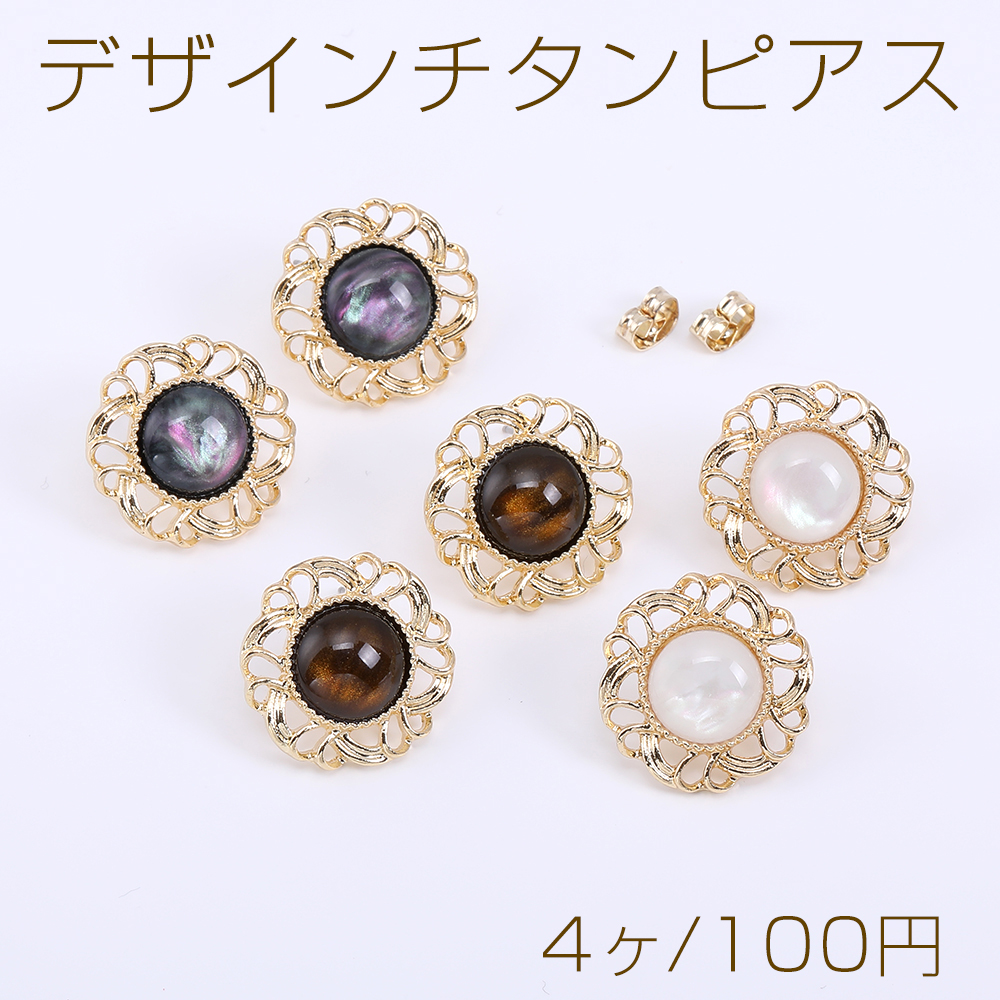 デザインチタンピアス レース丸型C 樹脂貼り【4ヶ】