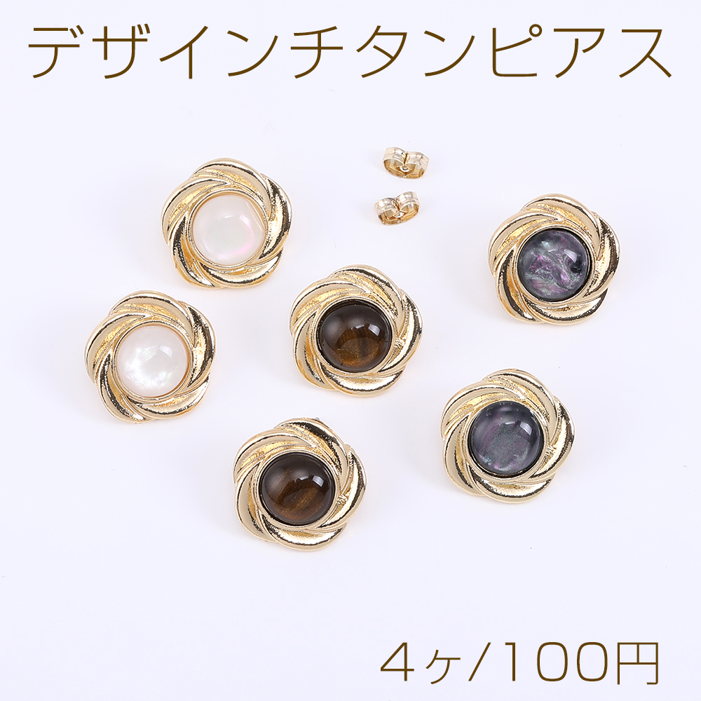 デザインチタンピアス レース丸型E 樹脂貼り【4ヶ】