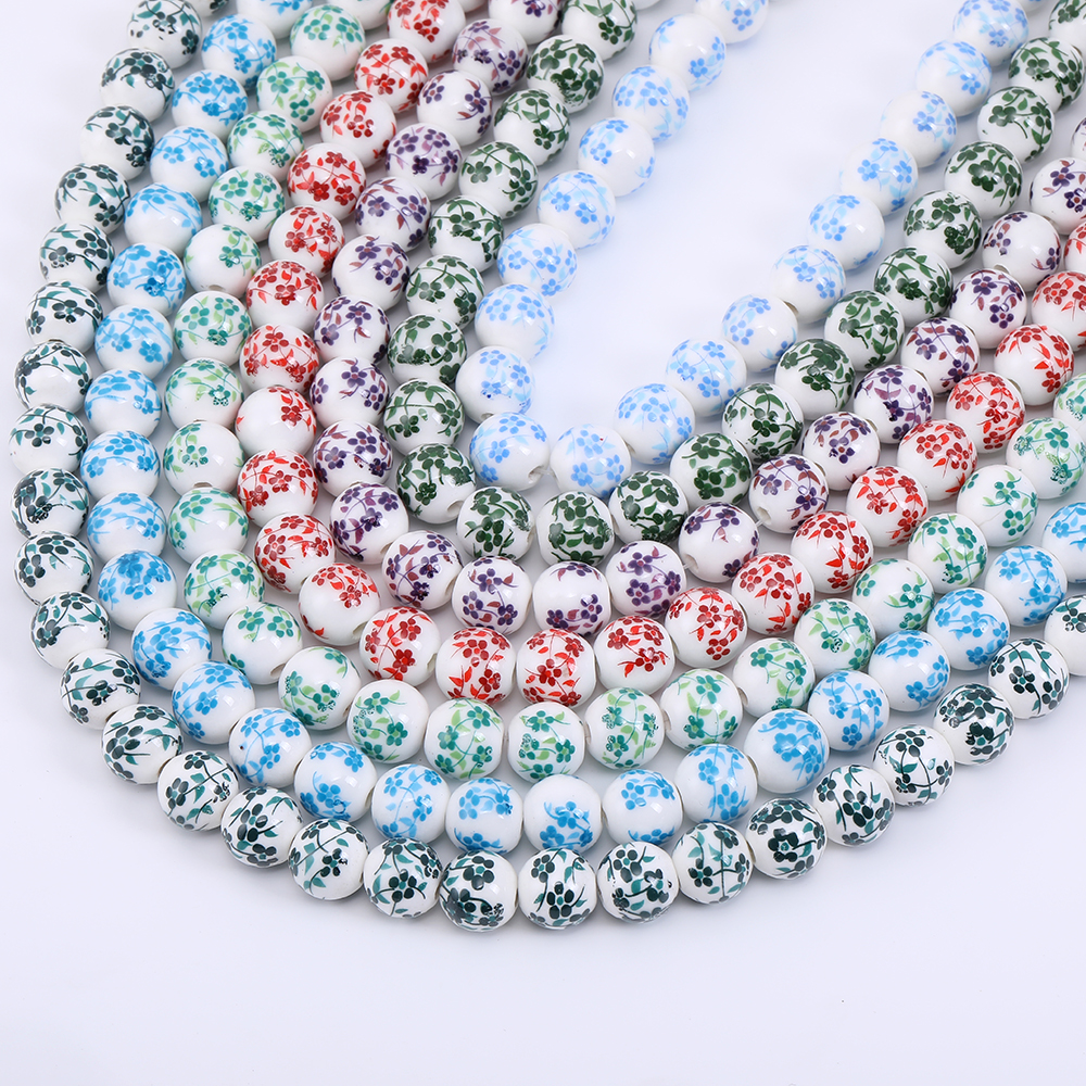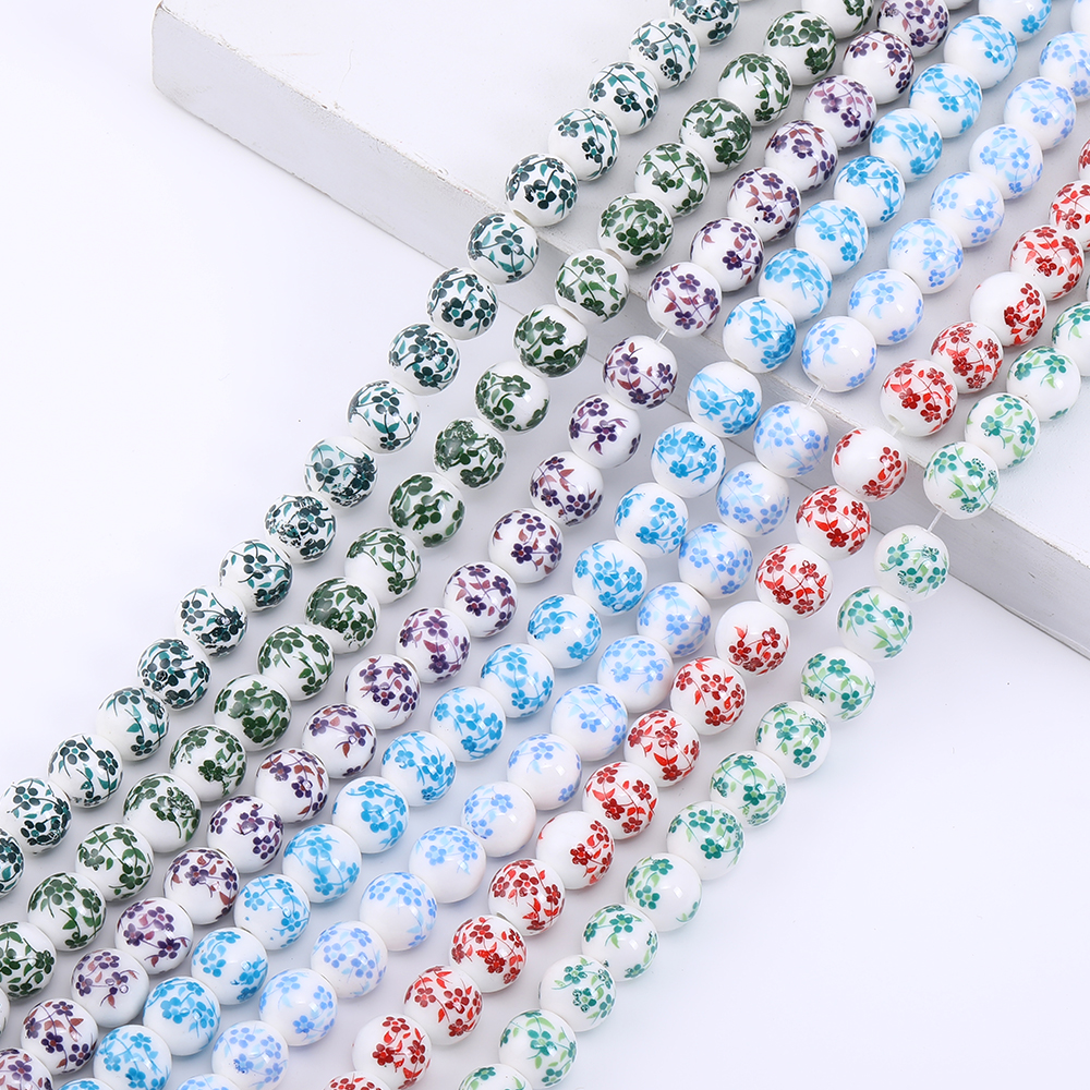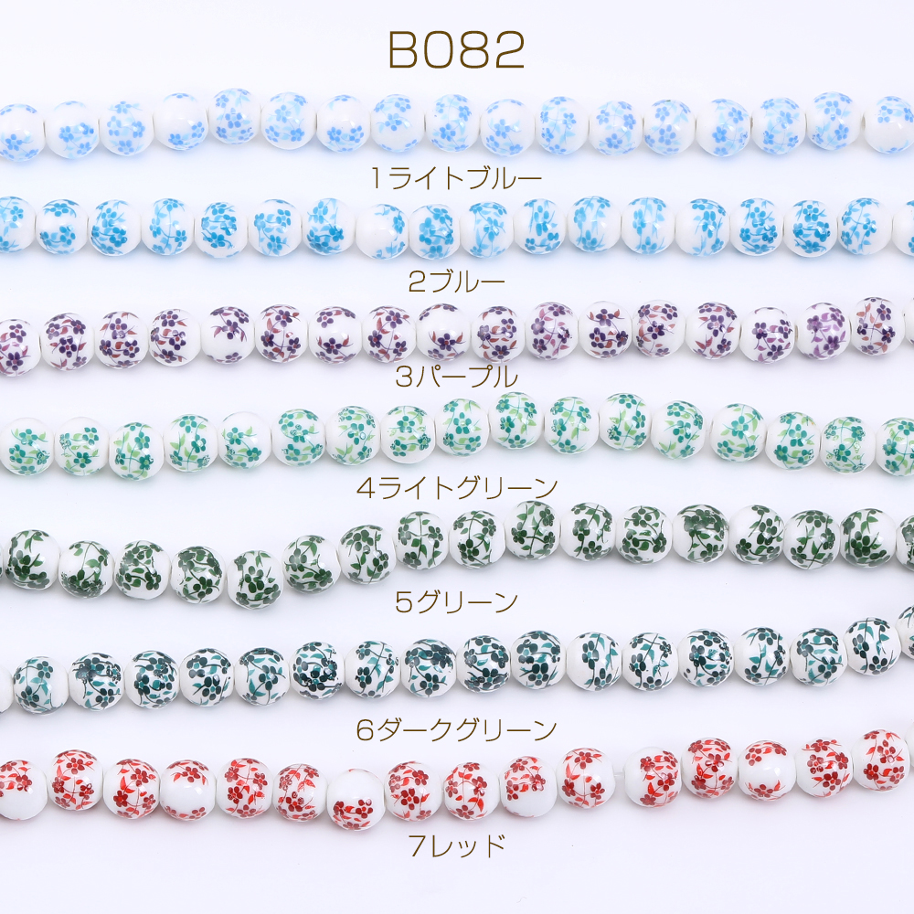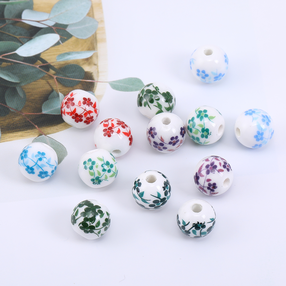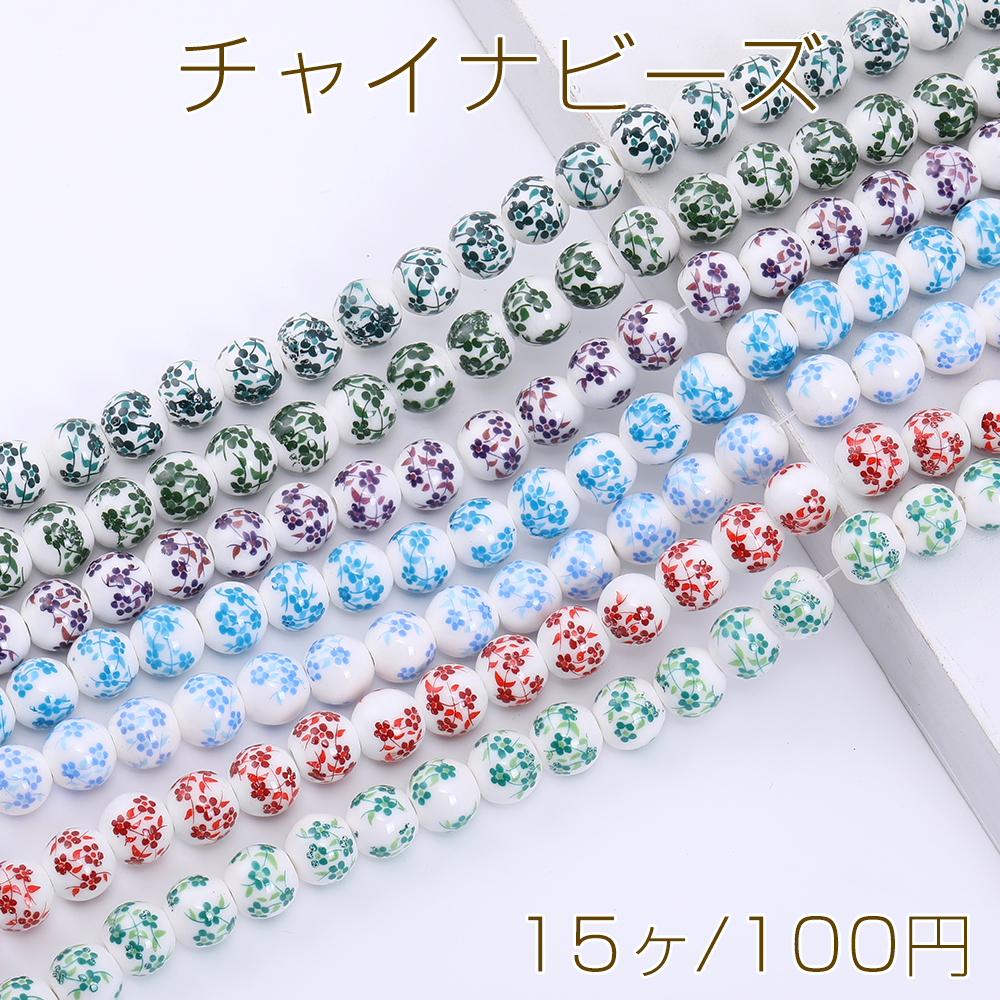 チャイナビーズ 陶器ビーズ 丸玉 10mm フラワー柄A【15ヶ】