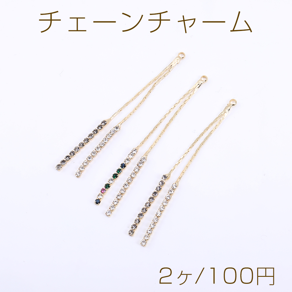 チェーンチャーム ラインストーン付き 1カン 53mm ゴールド【2ヶ】