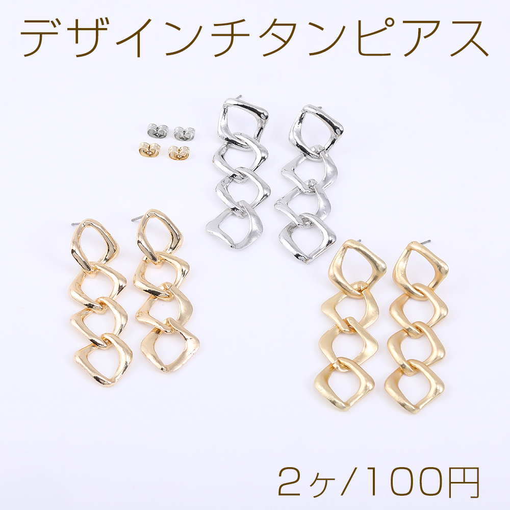 デザインチタンピアス 4連チェーンピアス 菱形 17×53mm【2ヶ】
