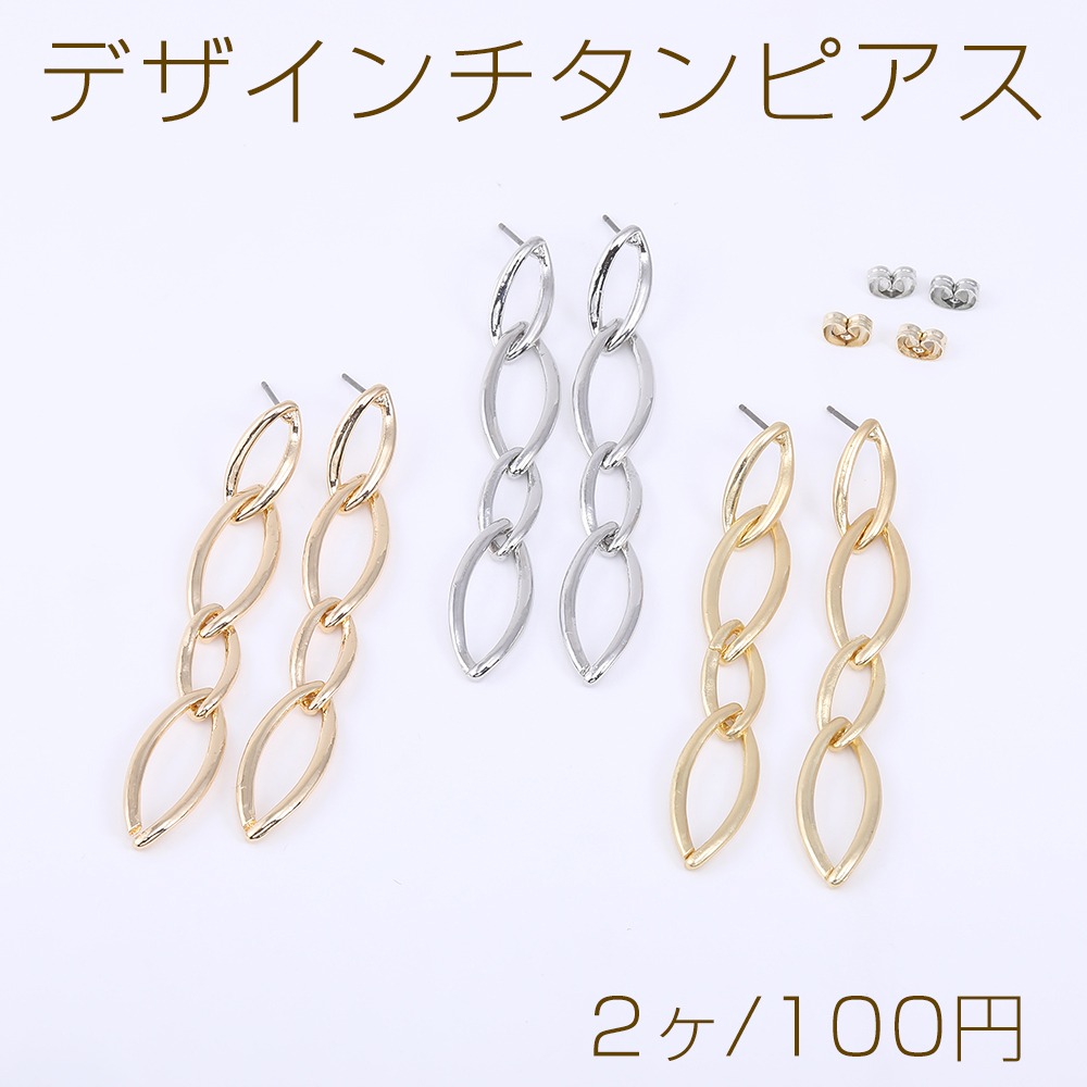 デザインチタンピアス 4連チェーンピアス ホースアイ 11×70mm【2ヶ】