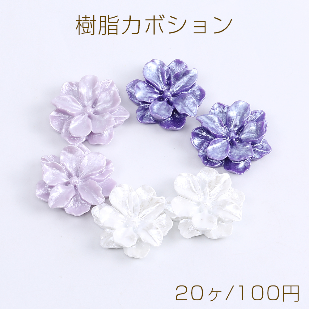 ホワイトフラワー貼付けパーツ 樹脂カボション フラワー 7×25mm【20ヶ】