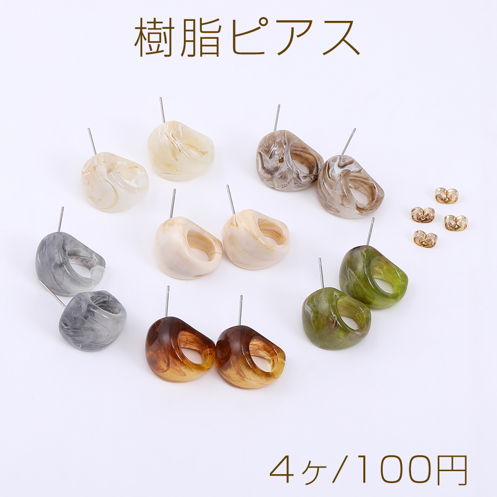 樹脂ピアス D字型 15×19mm【4ヶ】