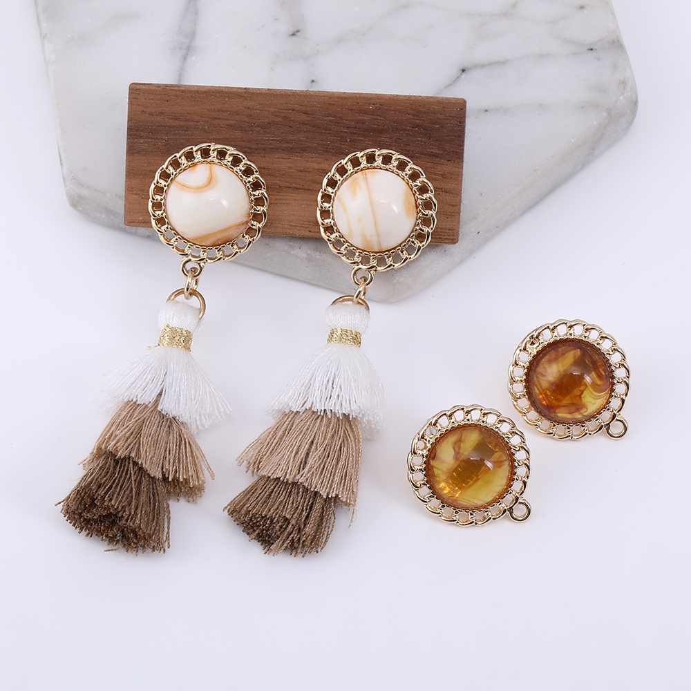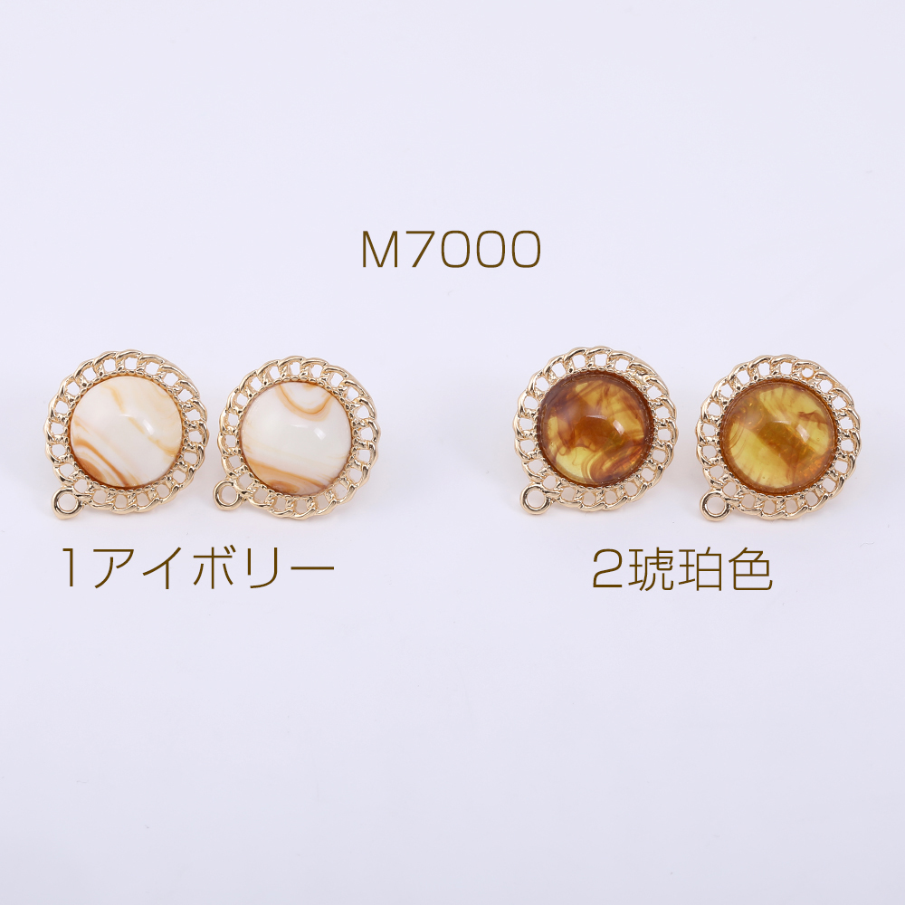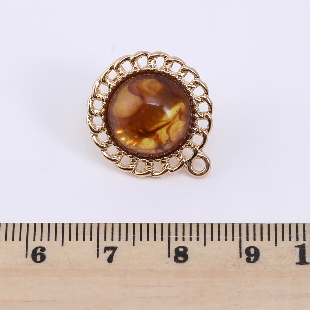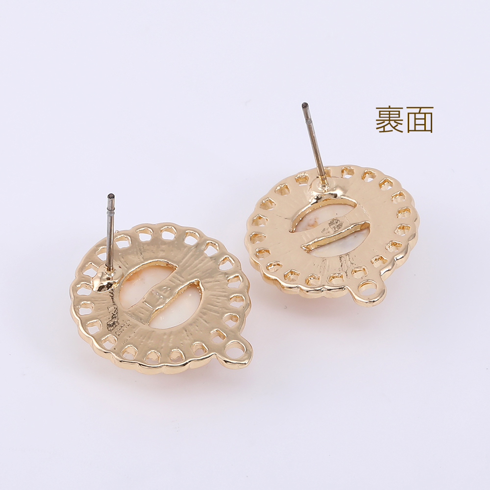 デザインポストピアス レース丸型 樹脂貼り 1カン 18×21mm【4ヶ】