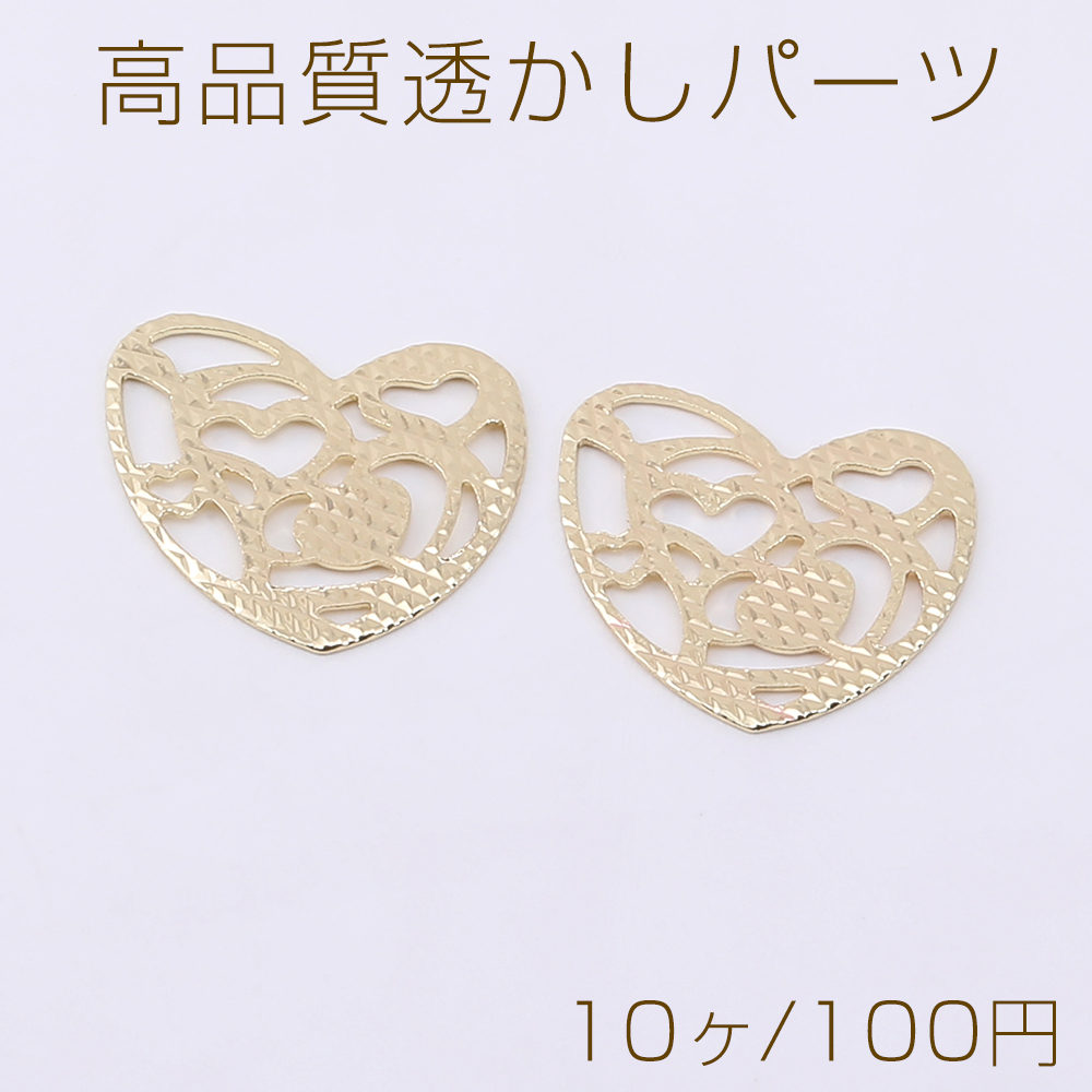 高品質透かしパーツ ハート 16×16mm ゴールド【10ヶ】