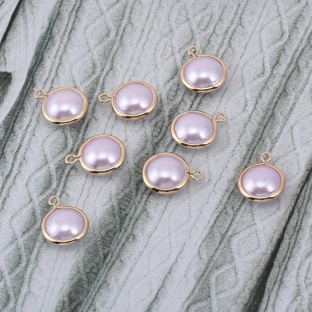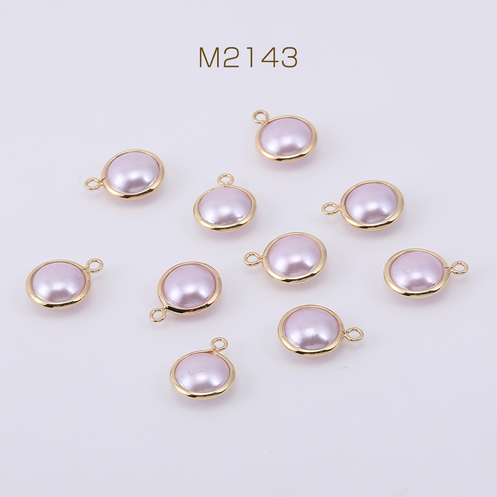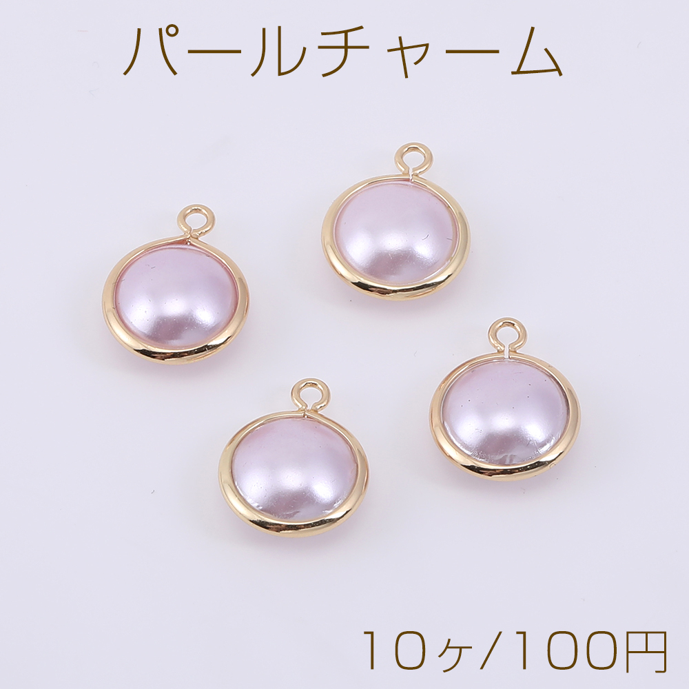 パールチャーム 丸型 1カン 10×13mm ゴールド/ライトピンク【10ヶ】