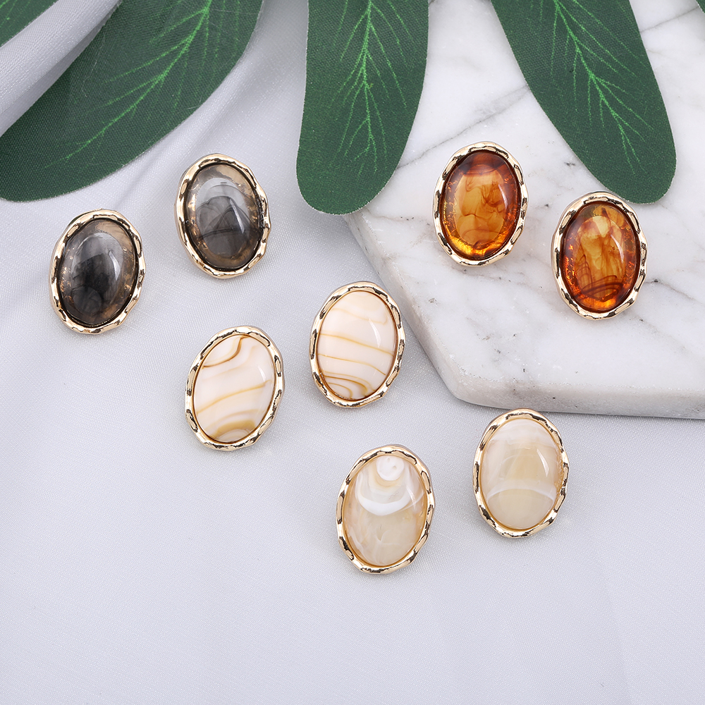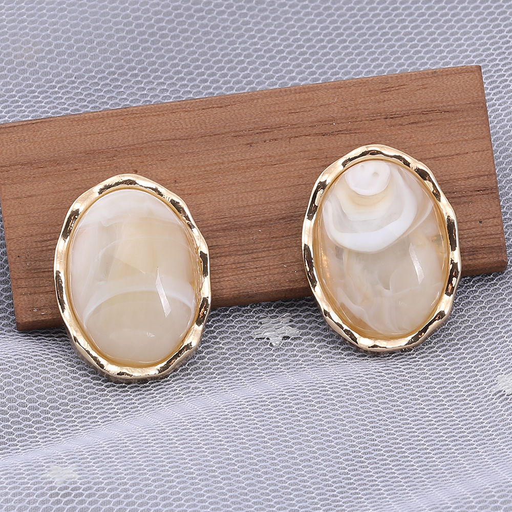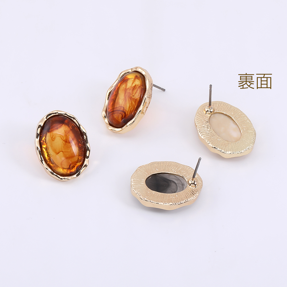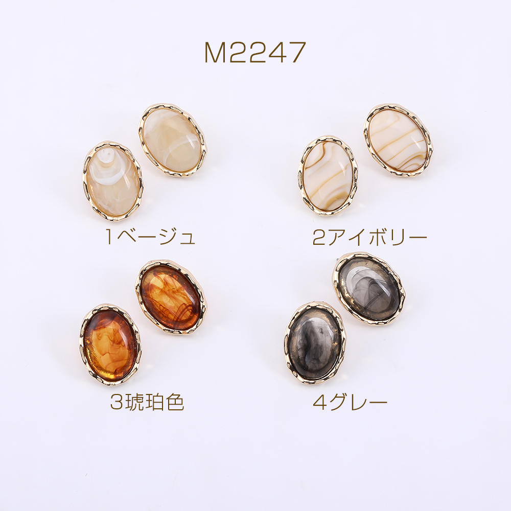 デザインチタンピアス オーバル 樹脂貼り 16×21mm ゴールド【4ヶ】