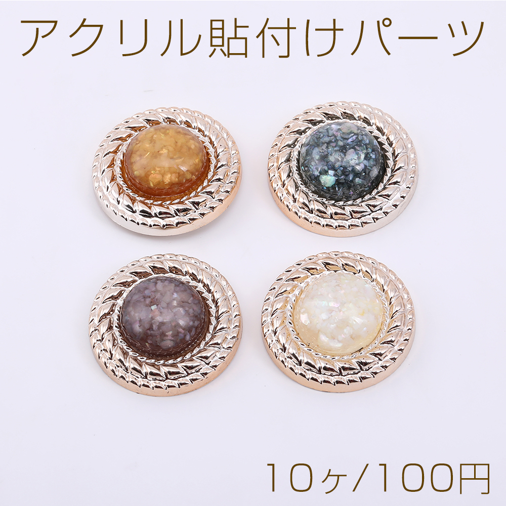 アクリル貼付けパーツ 樹脂貼り クラッシュシェル入り 丸型 22mm【10ヶ】
