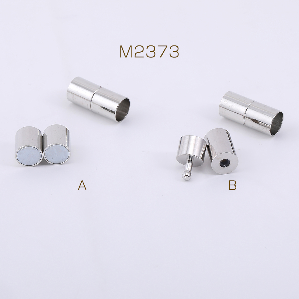 マグネットクラスプ 円筒形 内径約6mm ロジウム【6ヶ】