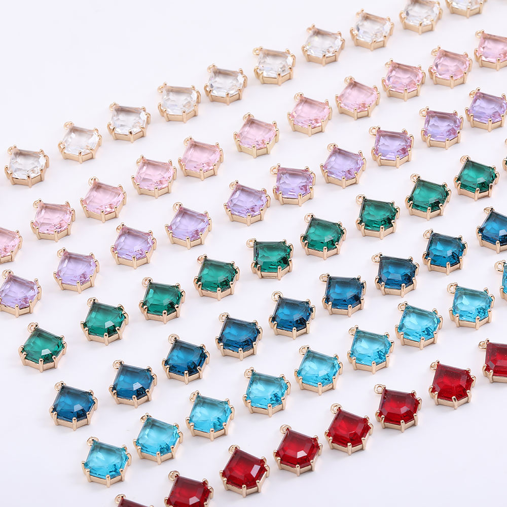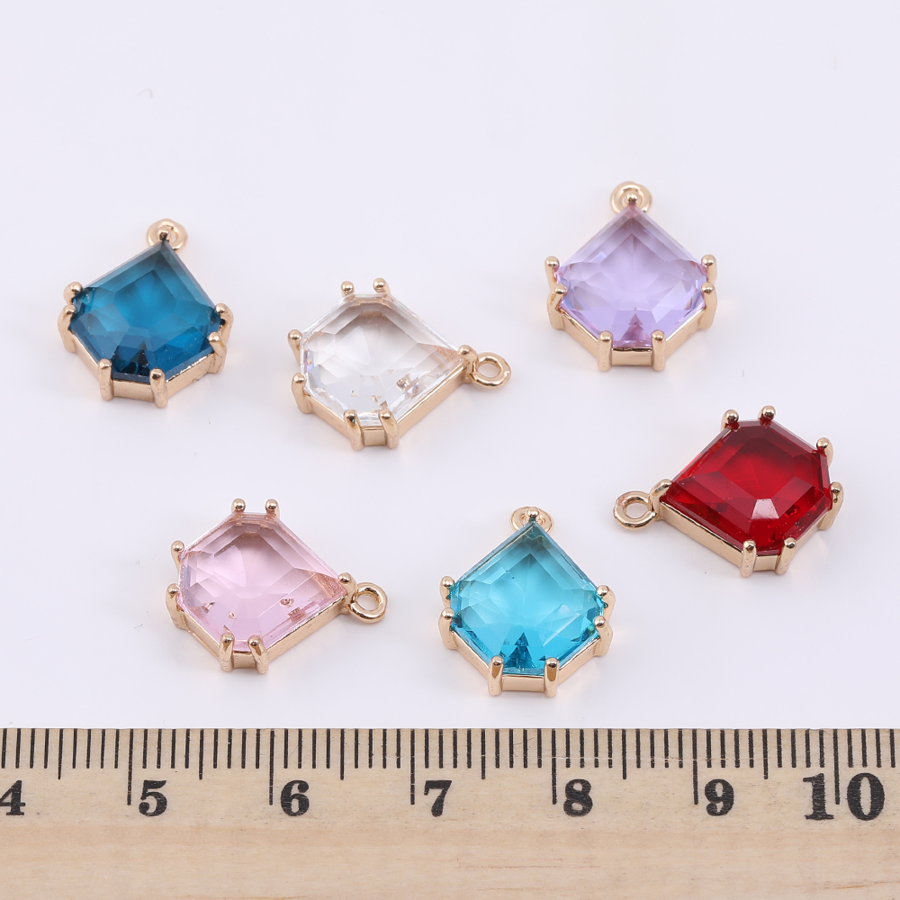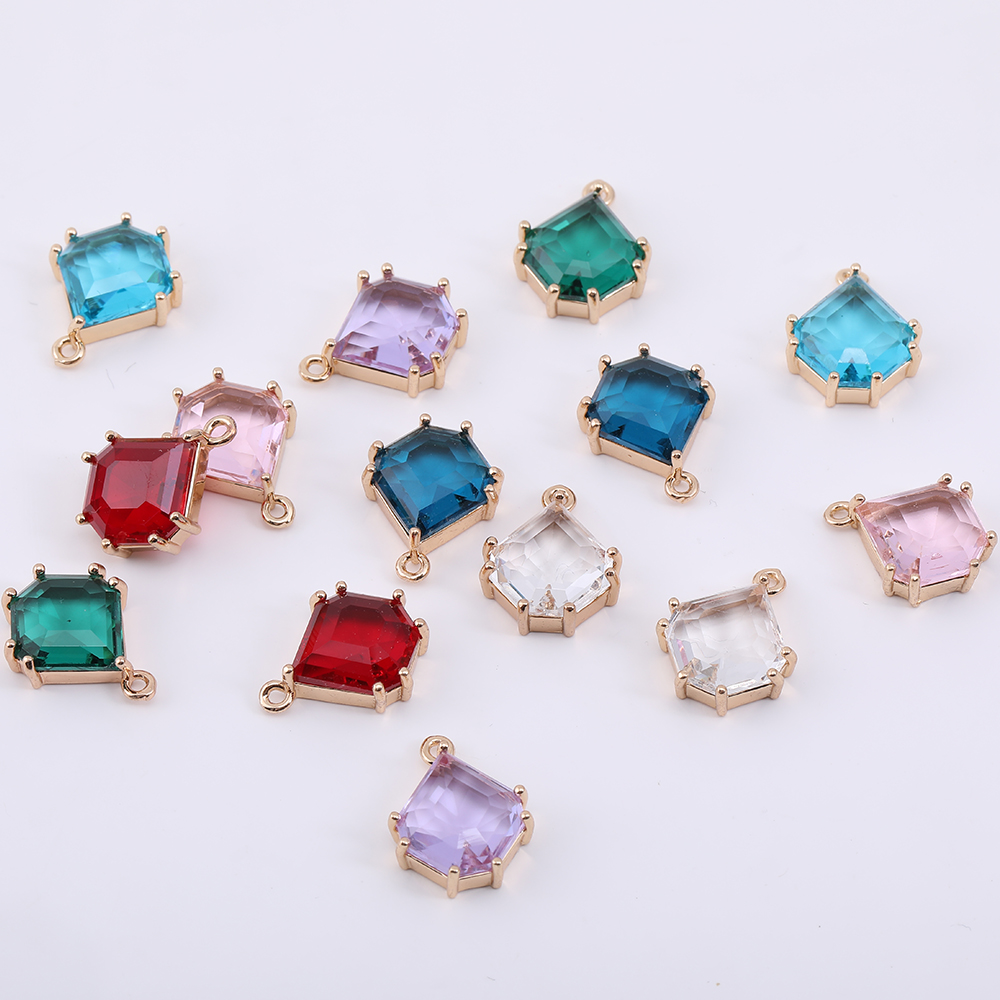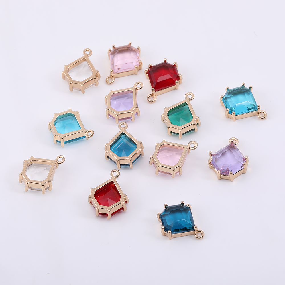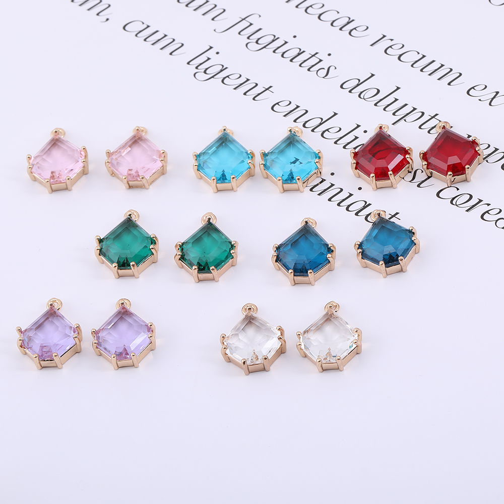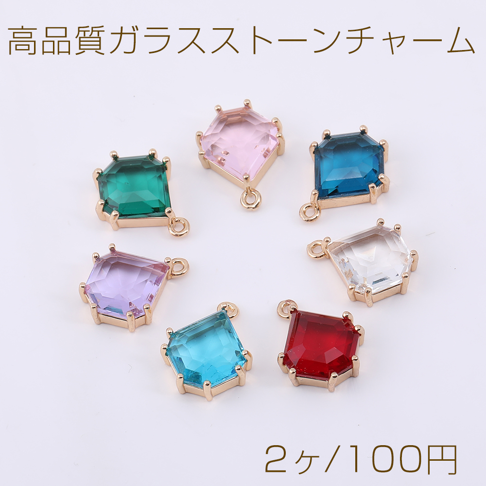 高品質ガラスストーンチャーム 雫型 1カン 12×16mm ゴールド【2ヶ】