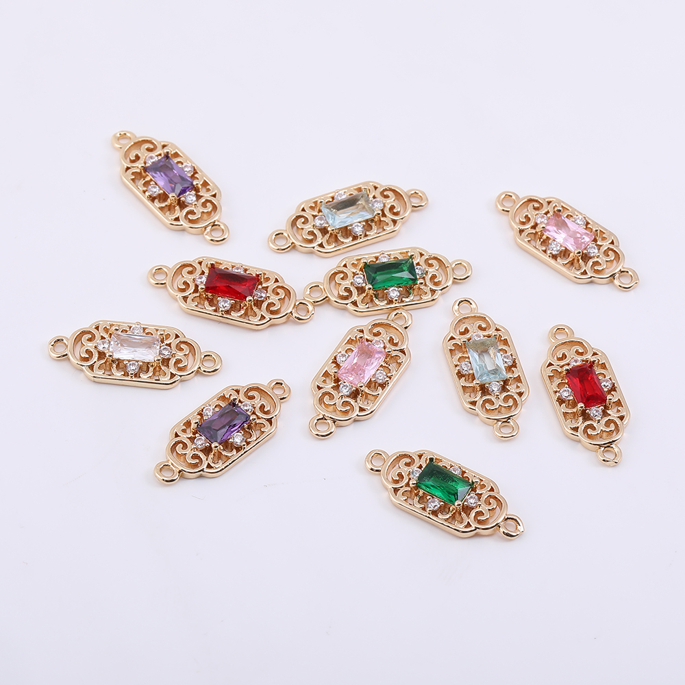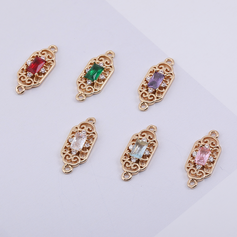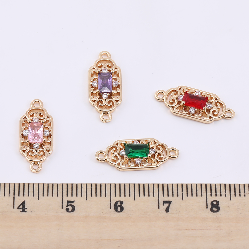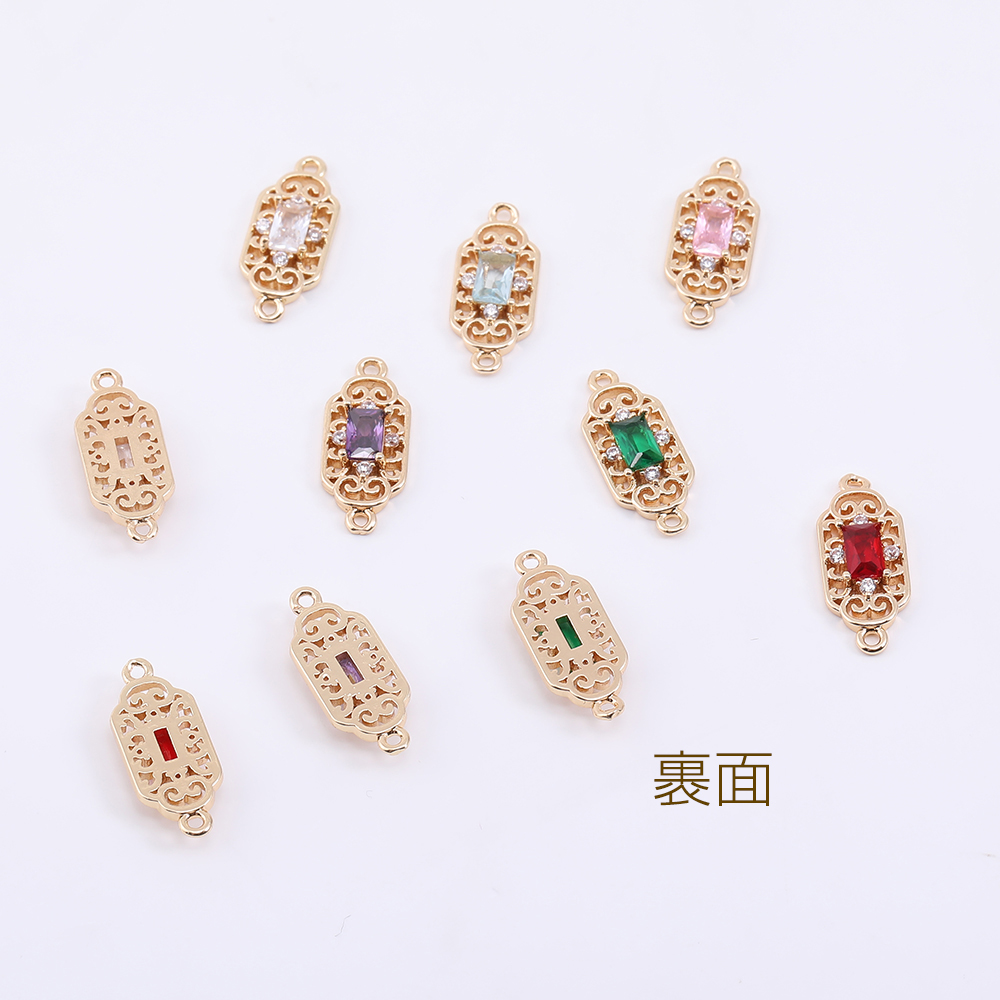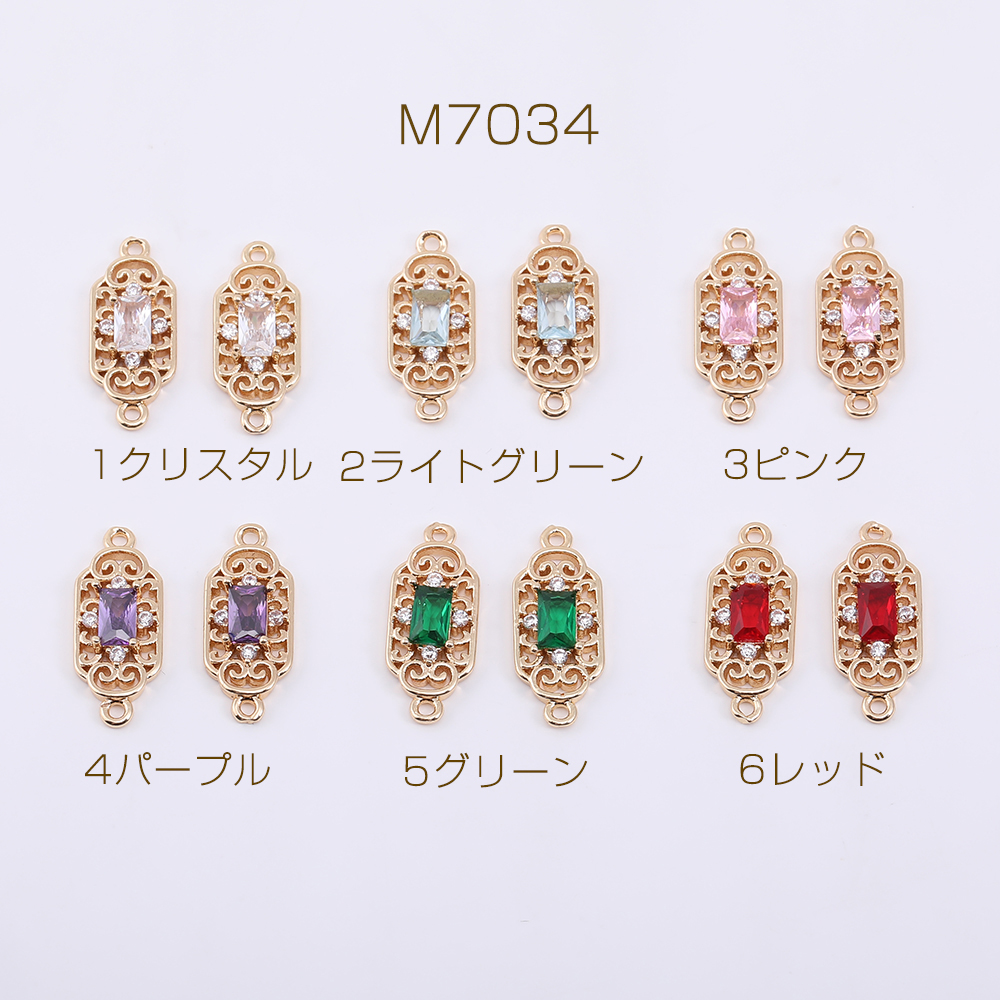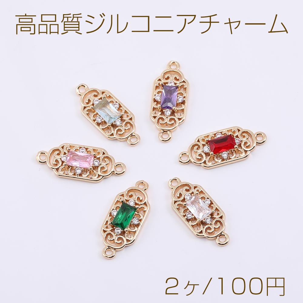 高品質ジルコニアチャーム 長方形 2カン 7×18mm ゴールド【2ヶ】